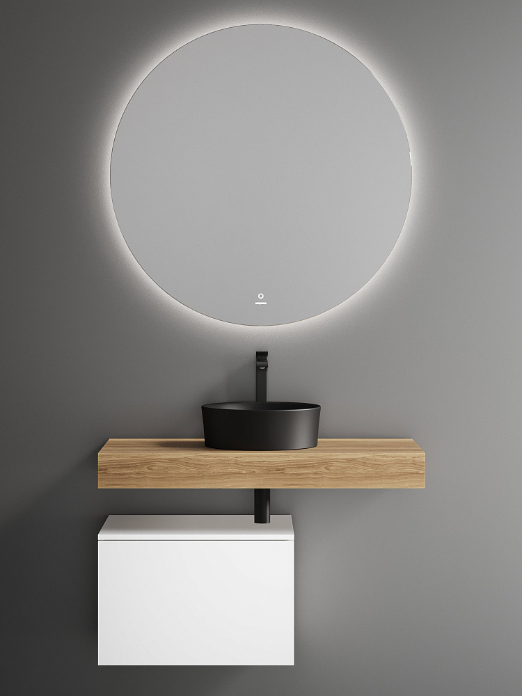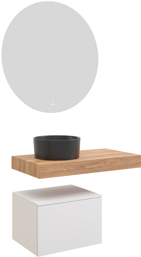Мебель для ванной комнаты STWORKI Ольборг 100 столешница дуб французский, без отверстий, с тумбой 60, черная раковина