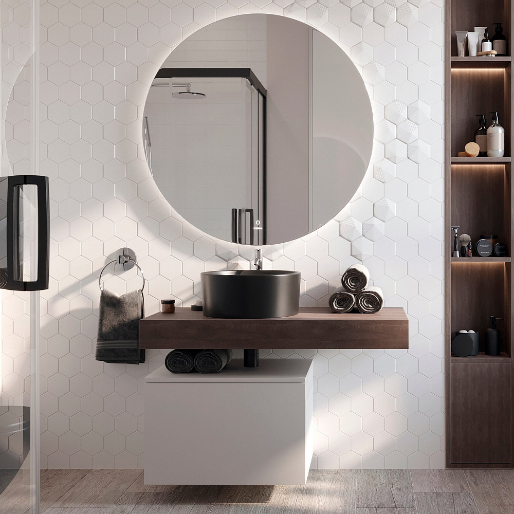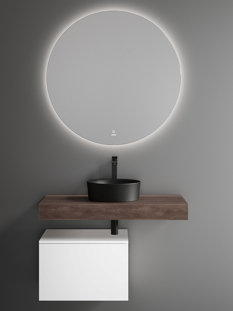 Мебель для ванной комнаты STWORKI Ольборг 100 столешница дуб карпентер, без отверстий, с тумбой 60, черной раковиной