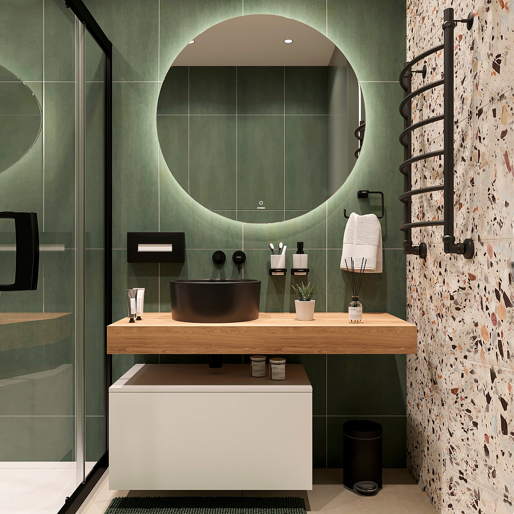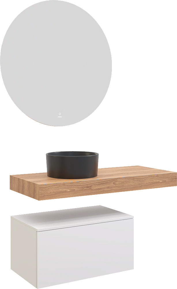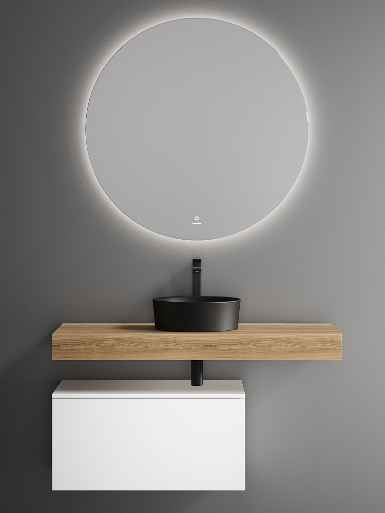 Мебель для ванной комнаты STWORKI Ольборг 120 столешница дуб французский, без отверстий, с тумбой 80, черная раковина