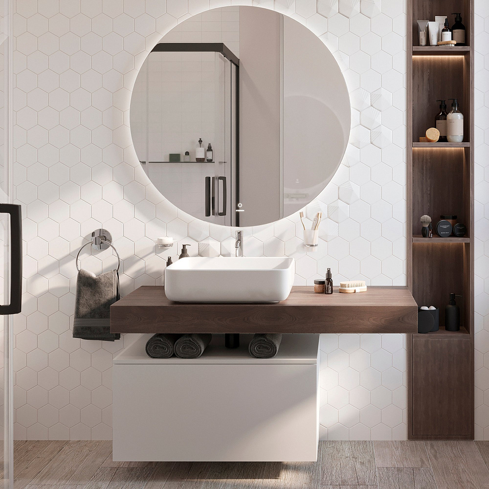 Мебель для ванной комнаты STWORKI Ольборг 120 столешница дуб карпентер, без отверстий, с тумбой 80