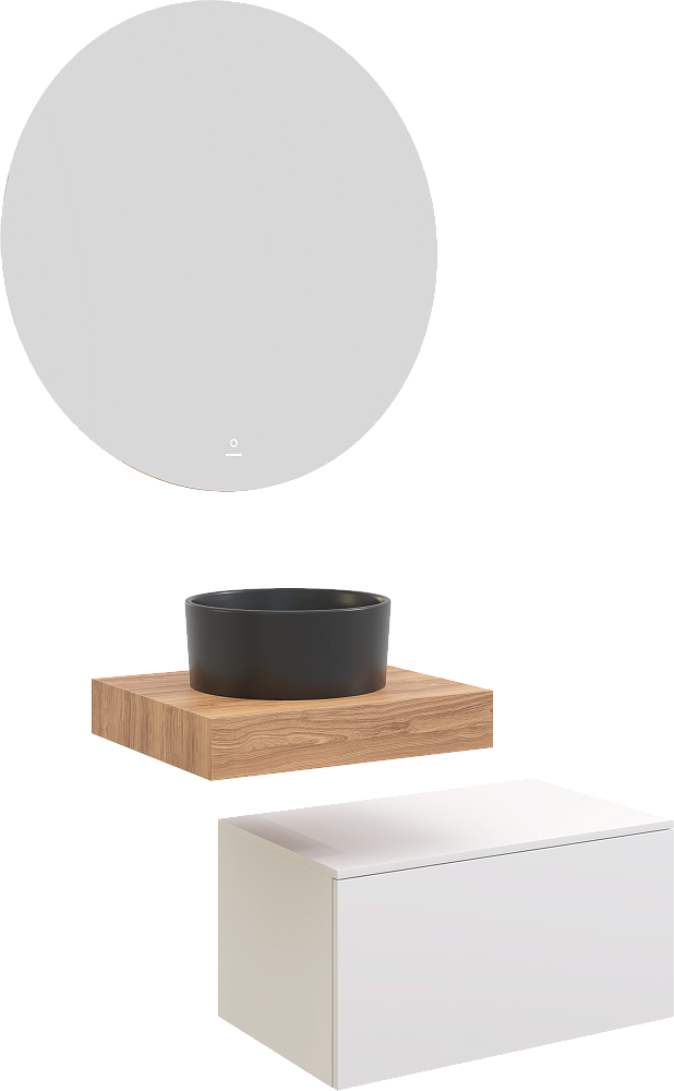 Мебель для ванной комнаты STWORKI Ольборг 60 столешница дуб французский, без отверстий, с тумбой 80 и черной раковиной