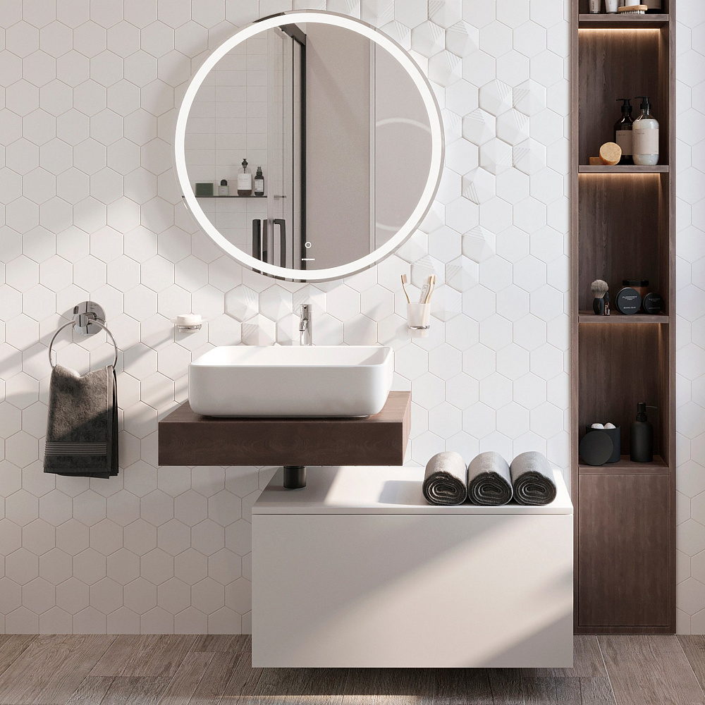 Мебель для ванной комнаты STWORKI Ольборг 60 столешница дуб карпентер, без отверстий, с тумбой 80