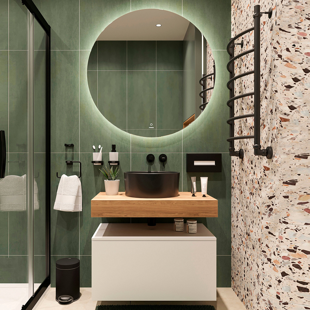 Мебель для ванной комнаты STWORKI Ольборг 80 столешница дуб французский, без отверстий, с тумбой 80, черная раковина