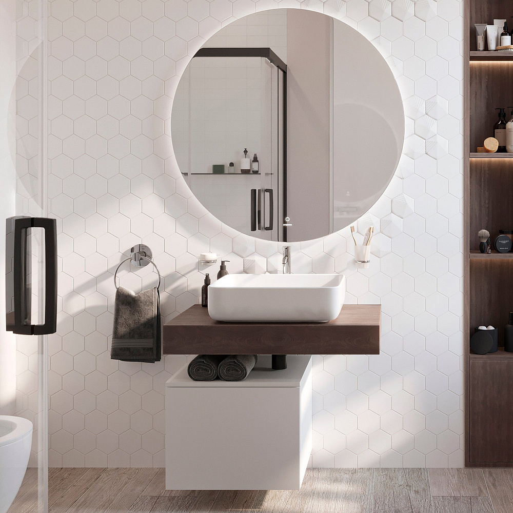 Мебель для ванной комнаты STWORKI Ольборг 80 столешница дуб карпентер, без отверстий, с тумбой 50