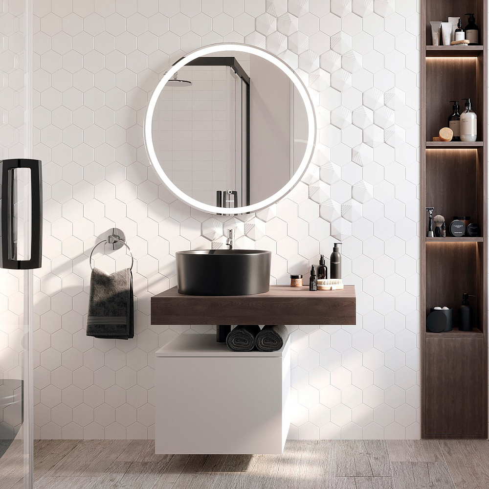 Мебель для ванной комнаты STWORKI Ольборг 80 столешница дуб карпентер, без отверстий, с тумбой 50, черной раковиной