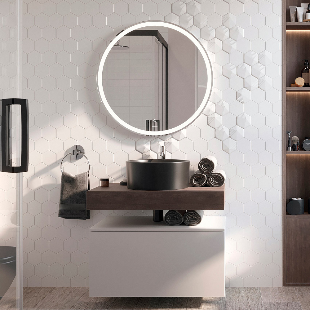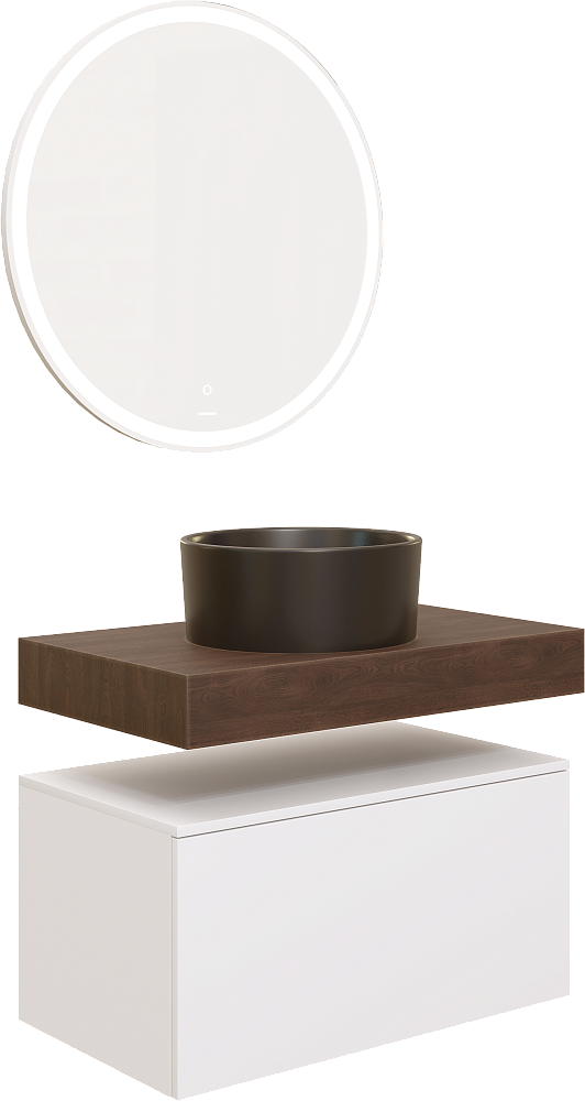 Мебель для ванной комнаты STWORKI Ольборг 80 столешница дуб карпентер, без отверстий, с тумбой 80, черной раковиной