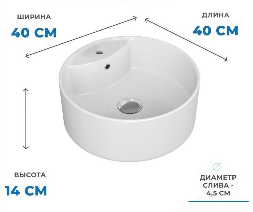 Накладная раковина STWORKI Копенгаген CO50104 D40 с полочкой под смеситель, белая, круглая