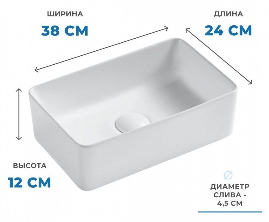Накладная раковина STWORKI Копенгаген CO50304 38 белая, прямоугольная
