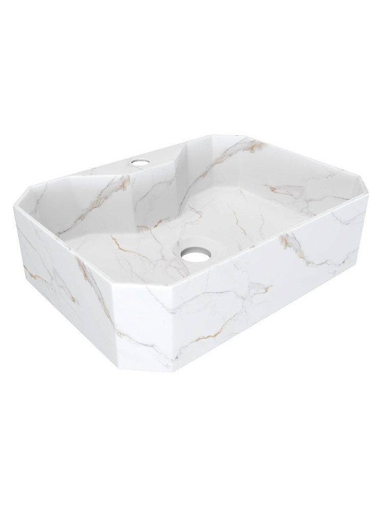 Накладная раковина STWORKI Копенгаген CO51206 50 белый мрамор, прямоугольная, с 1 отверстием под смеситель