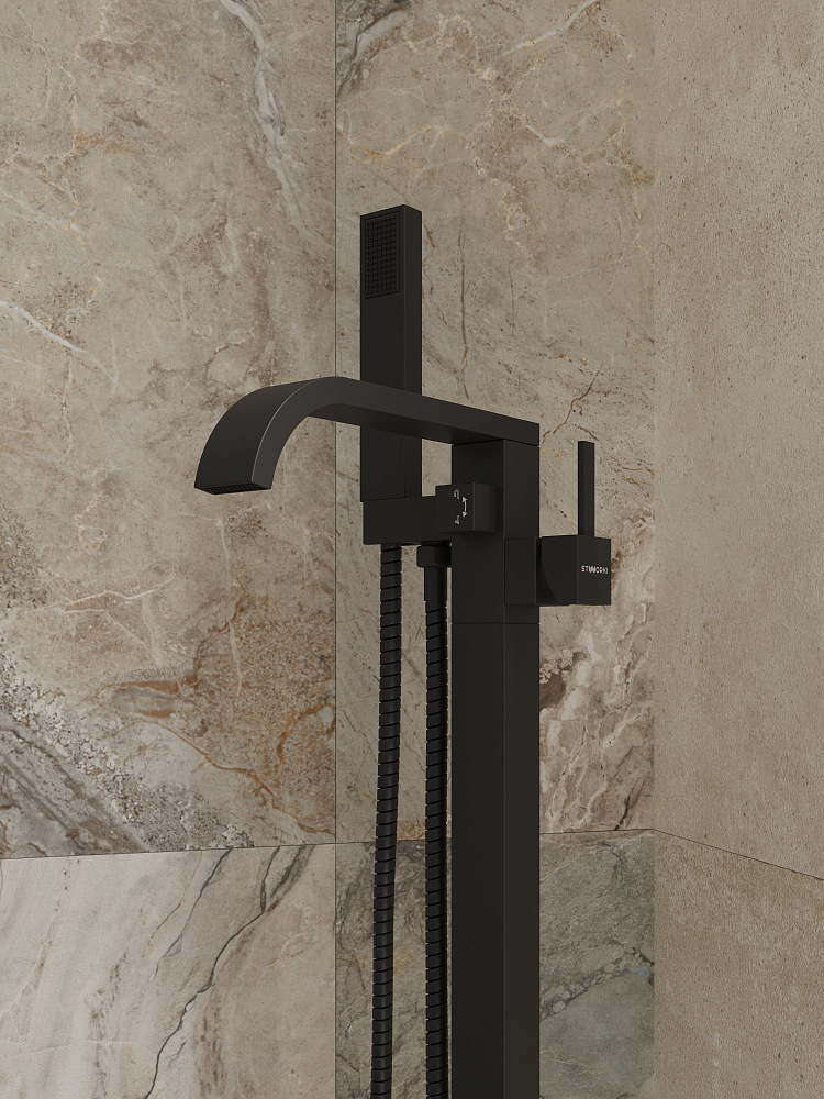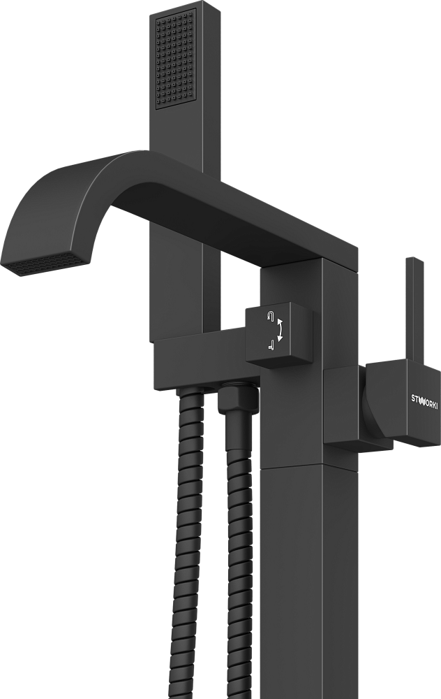 Напольный смеситель для ванны с душем STWORKI Эстерсунд S31080BK С ВНУТРЕННЕЙ ЧАСТЬЮ, матовый черный