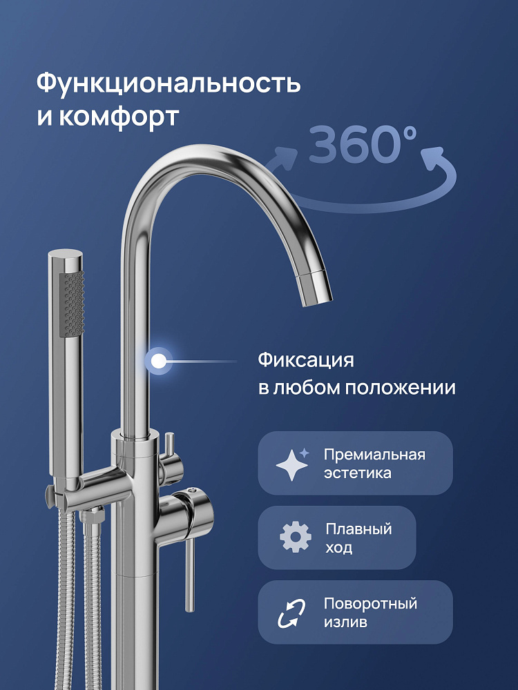 Напольный смеситель для ванны с душем STWORKI Лунд S25130CR хром