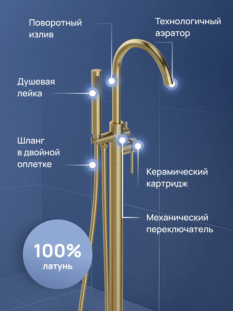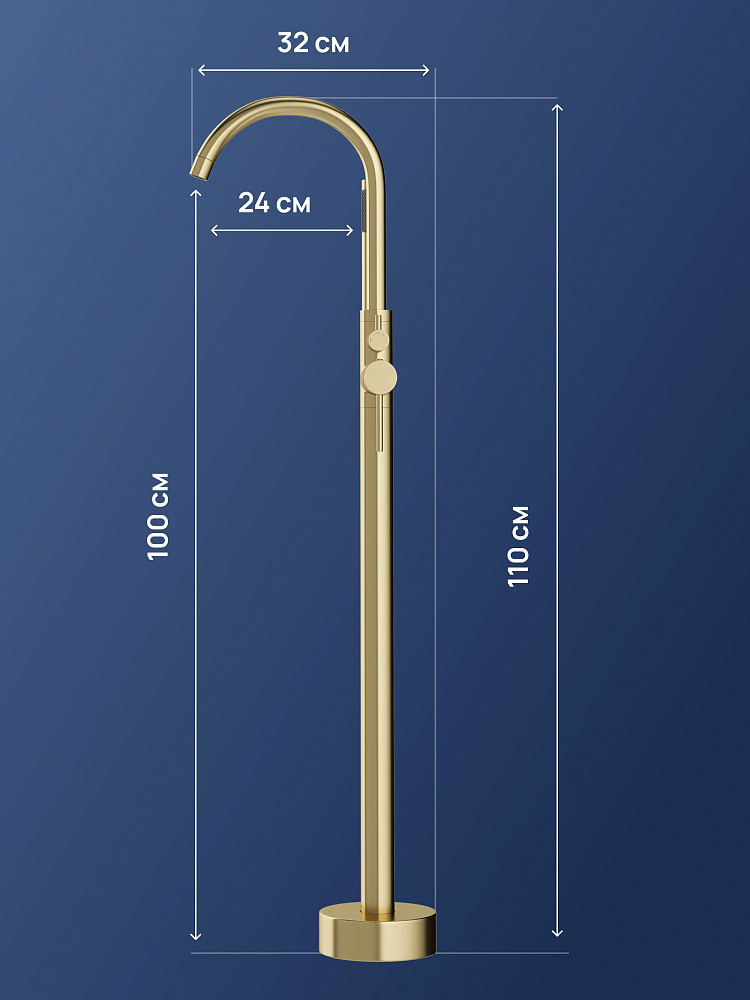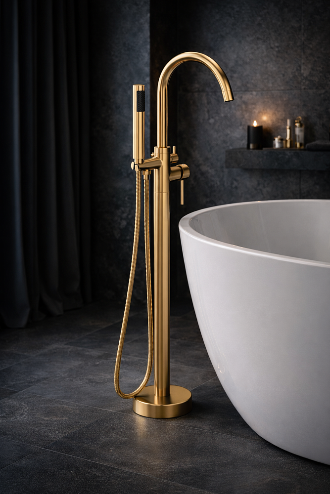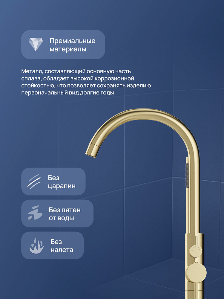 Напольный смеситель для ванны с душем STWORKI Лунд S25130GM матовое золото