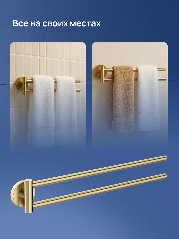 Полотенцедержатель STWORKI Киркенес S45360GM двойной, матовое золото