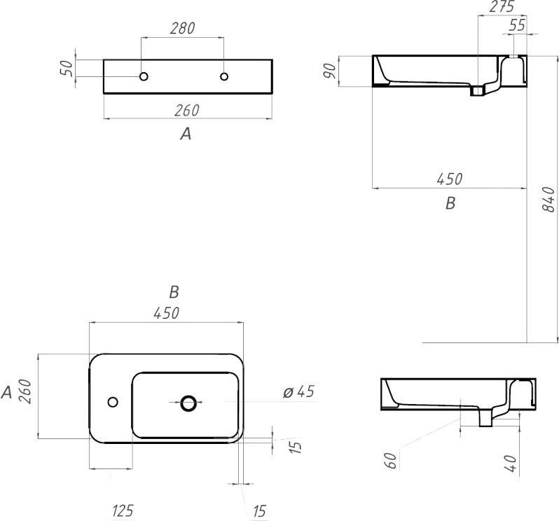 Раковина маленькая в туалет STWORKI Копенгаген CO50901 45 левая глянцевая белая, прямоугольная