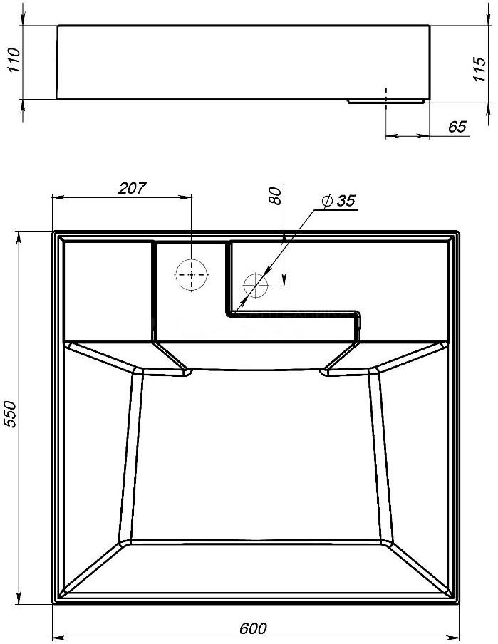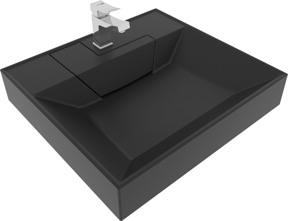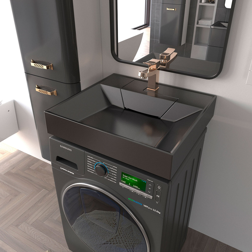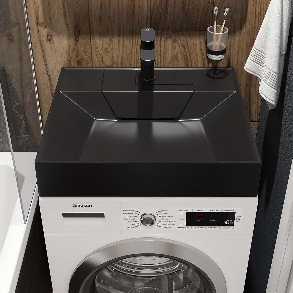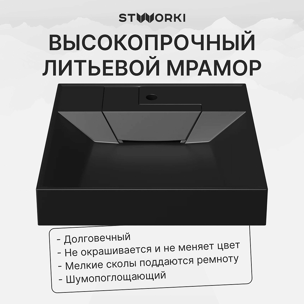 Раковина над стиральной машиной STWORKI Дублин 60x55 матовая черная, квадратная, литьевой мрамор, с комплектом кронштейнов