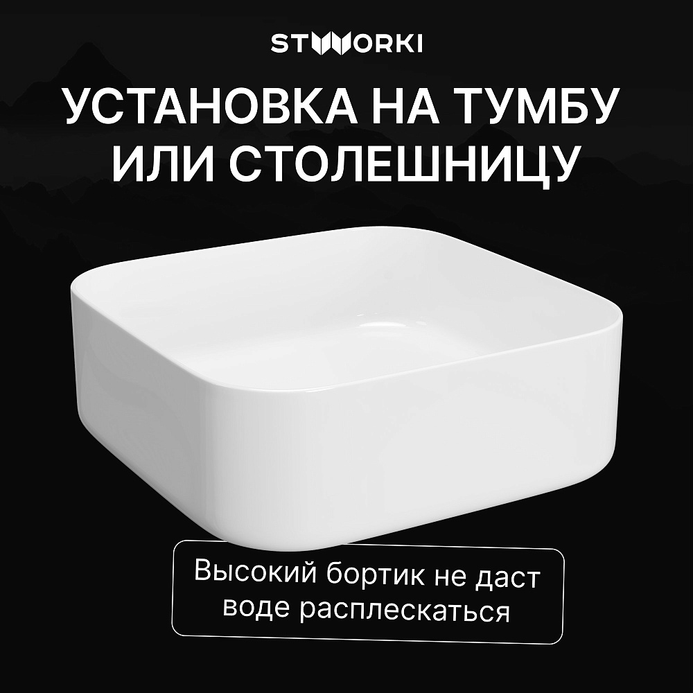 Накладная раковина STWORKI Эстерсунд S31410WH 39 глянцевая белая, квадратная