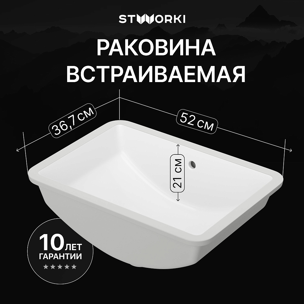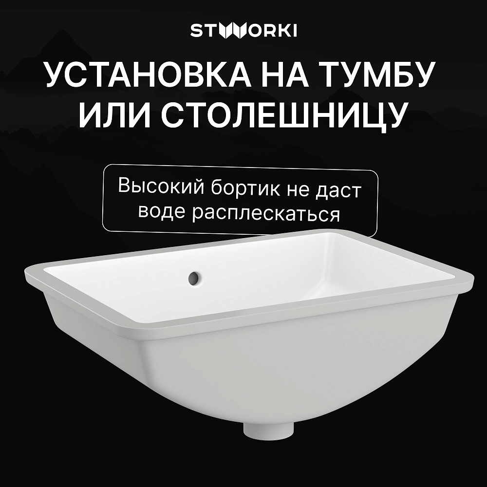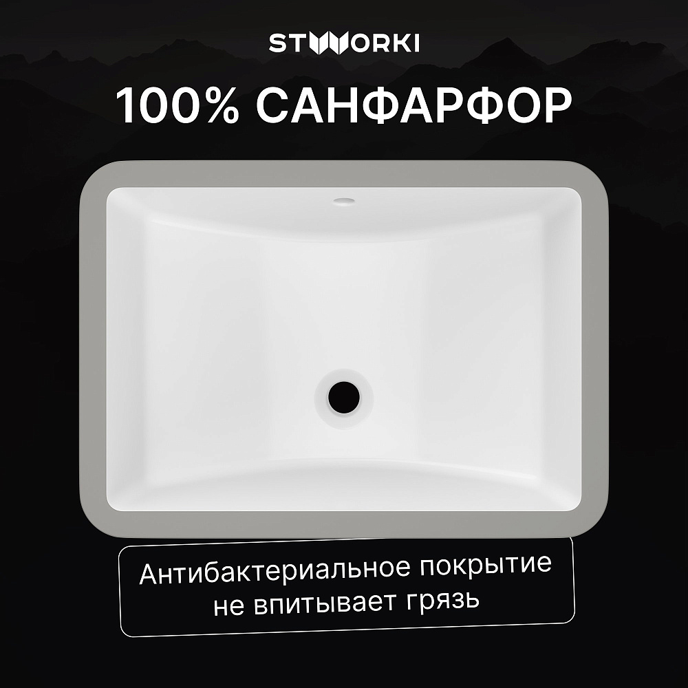 Раковина встраиваемая снизу STWORKI Копенгаген S42410WH 52 глянцевая белая, прямоугольная
