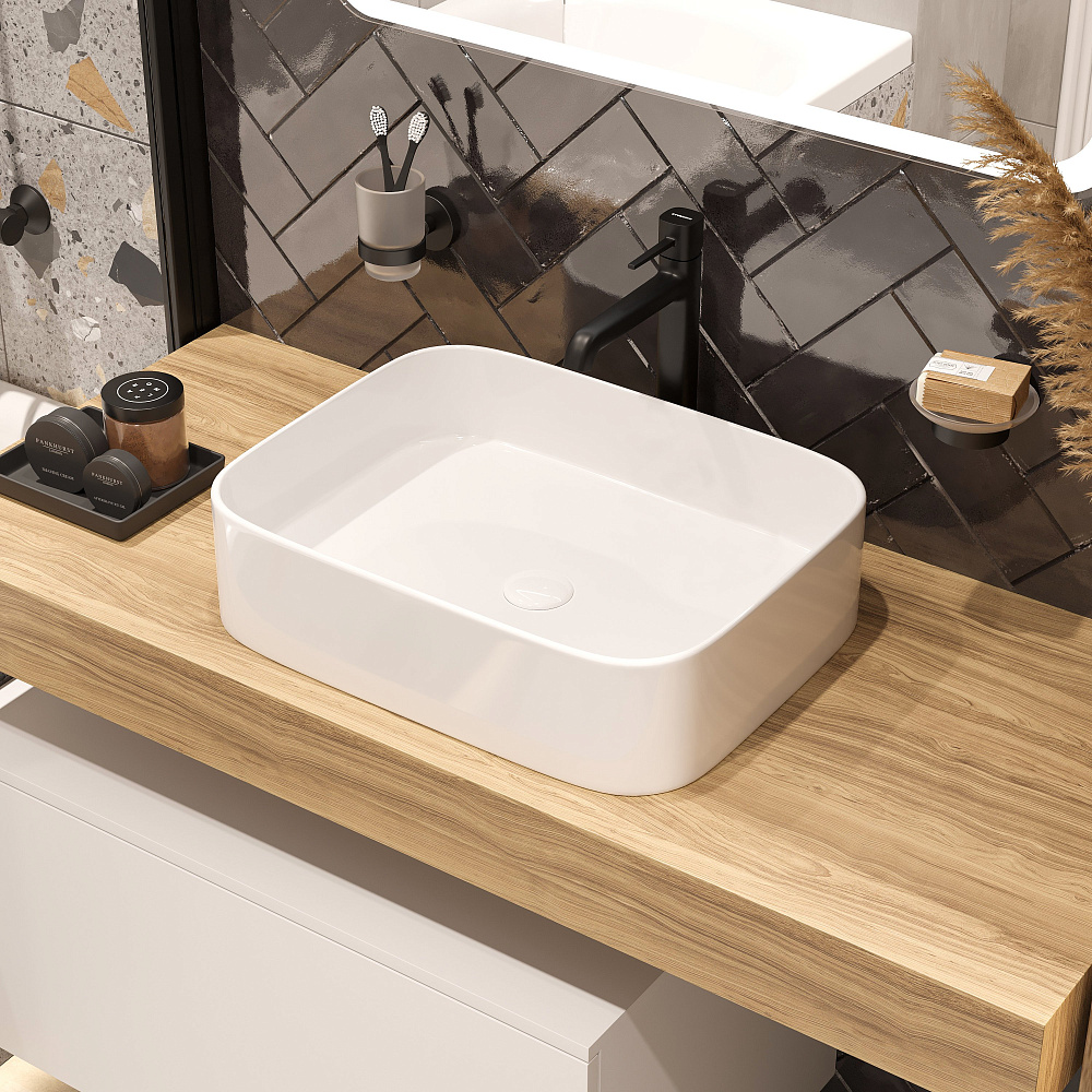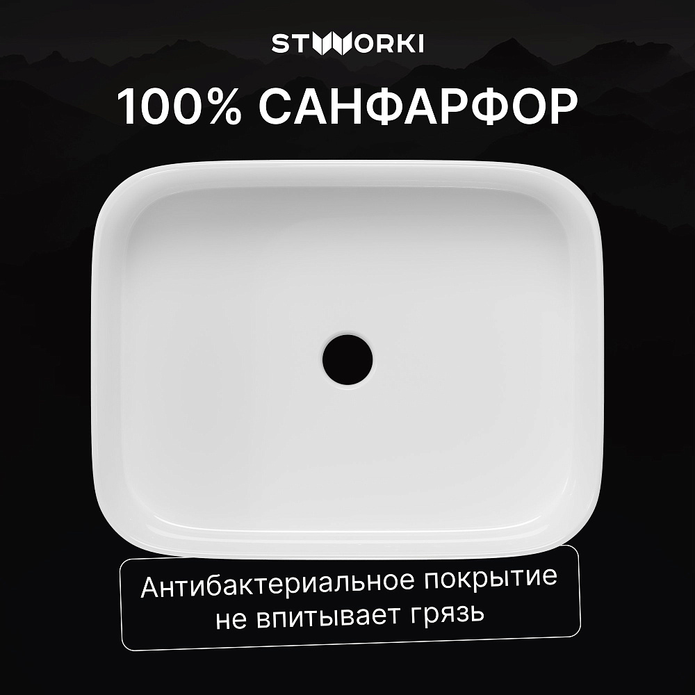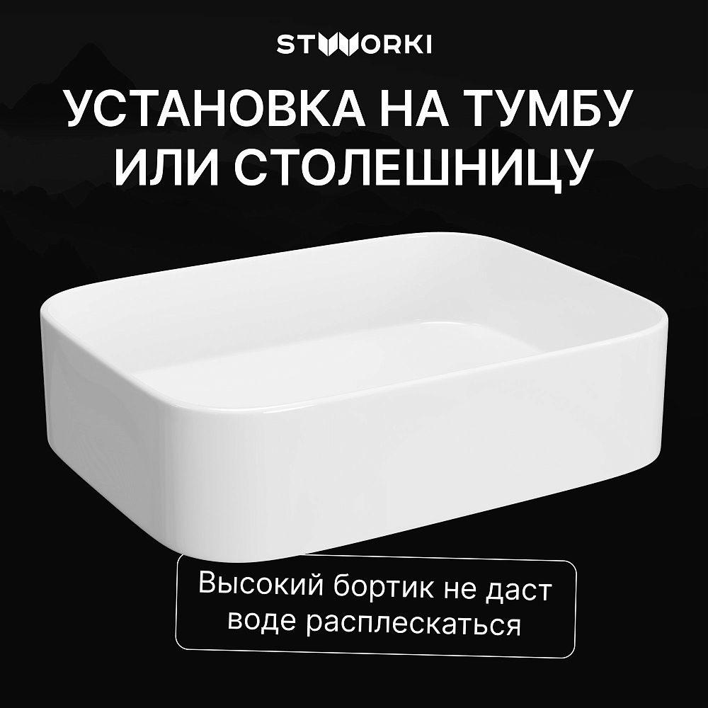 Накладная раковина STWORKI Ольборг S20410WH 50 глянцевая белая, прямоугольная