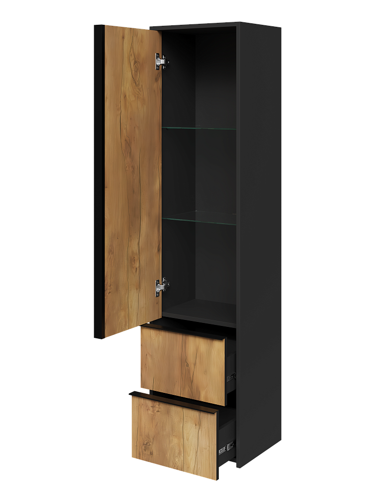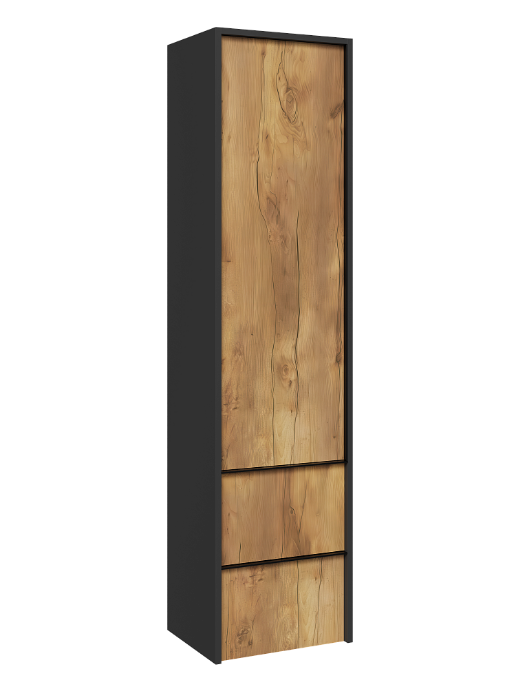 Шкаф-пенал для ванной STWORKI Гриндстед 40 с выдвижными ящиками, дуб таксония, антрацит матовый