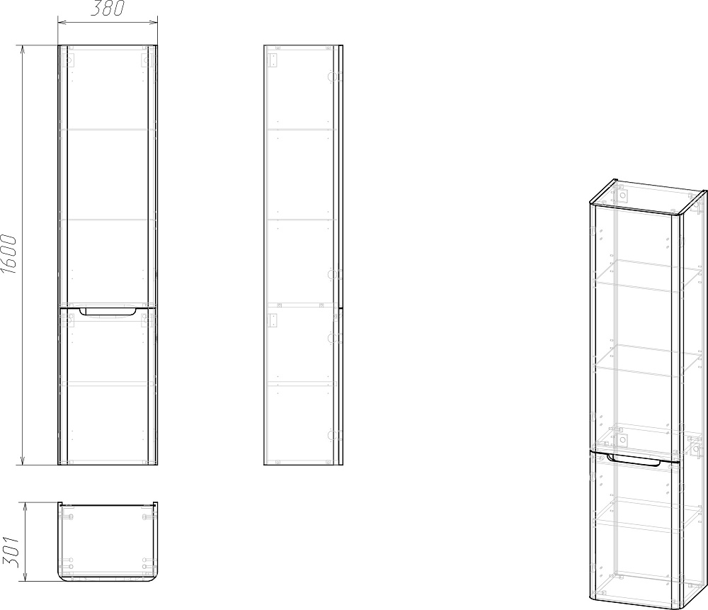 Шкаф-пенал для ванной STWORKI Монтре 38 антрацит
