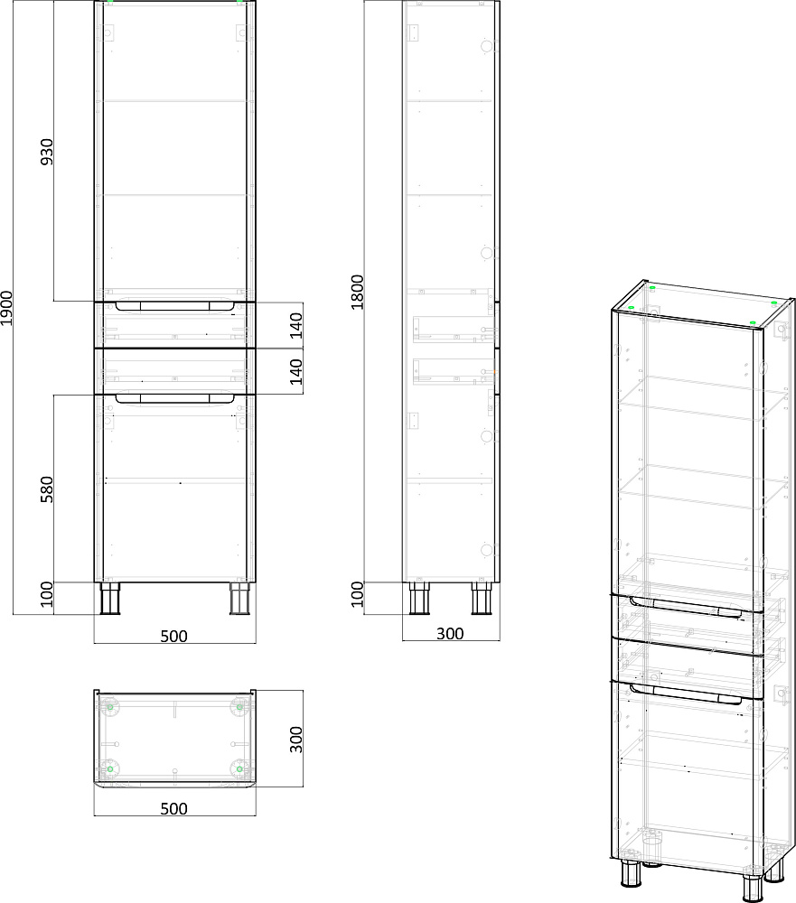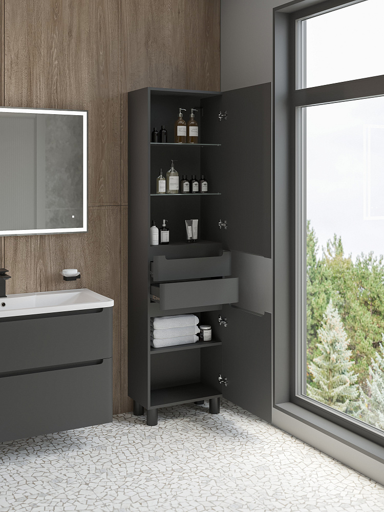 Шкаф-пенал для ванной STWORKI Монтре 50 антрацит