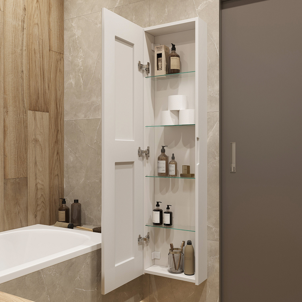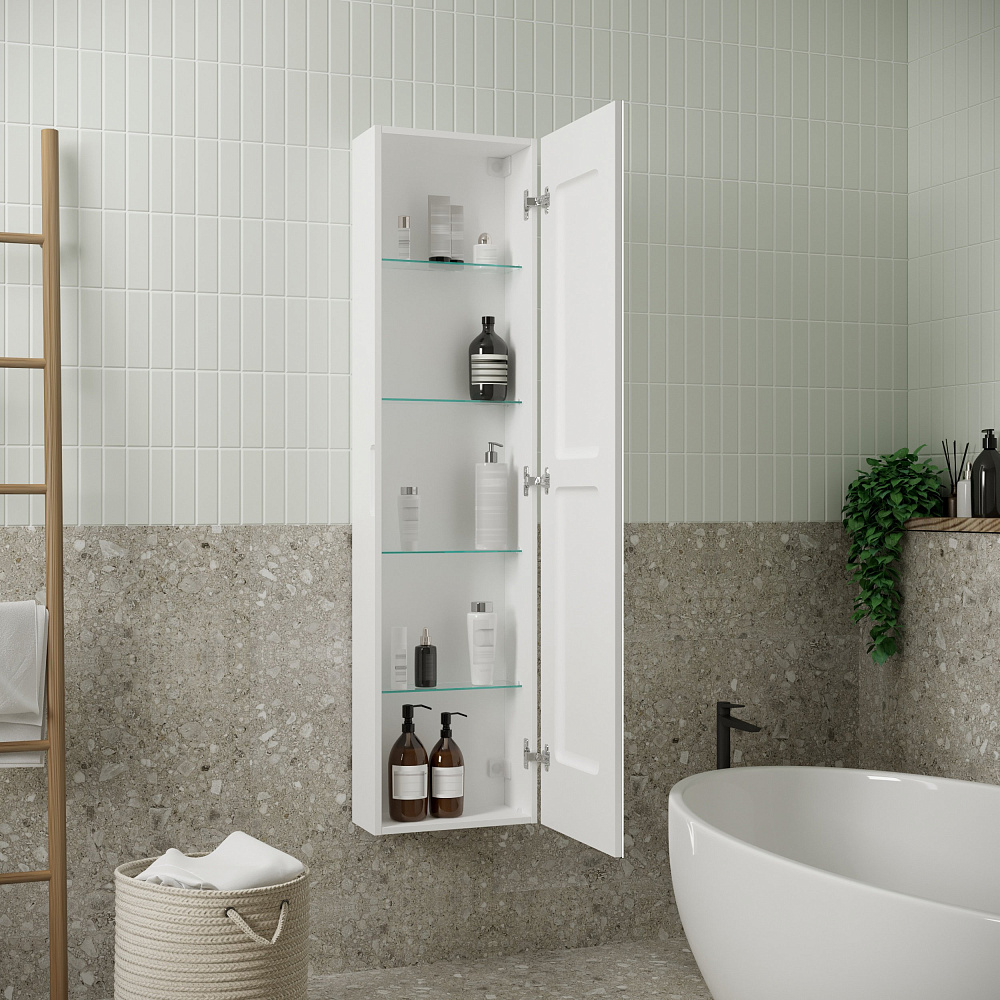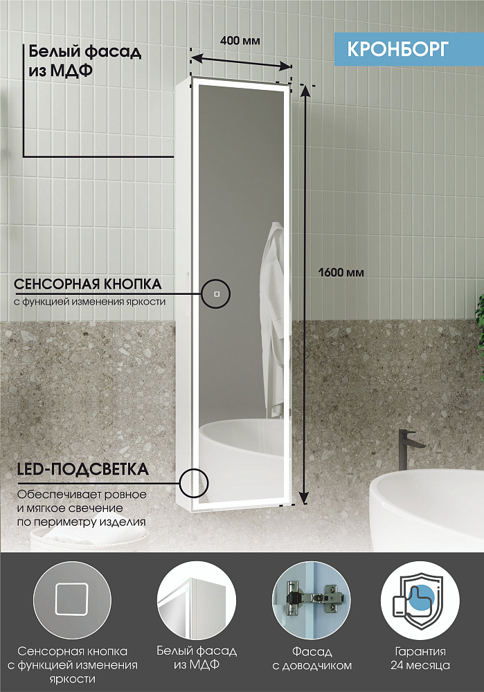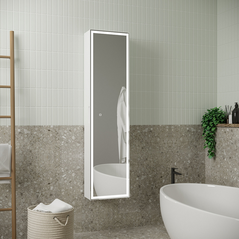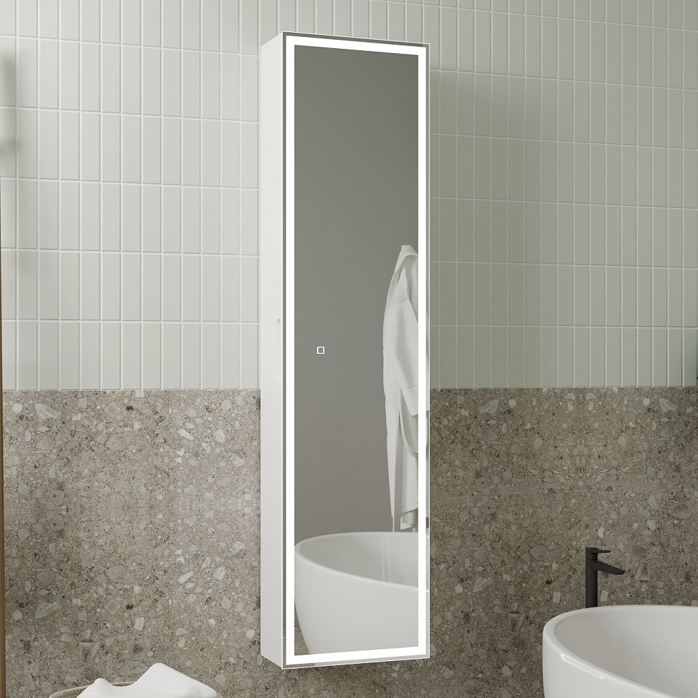 Шкаф-пенал для ванной с зеркалом STWORKI Кронборг МВК104 40 с подсветкой, белый
