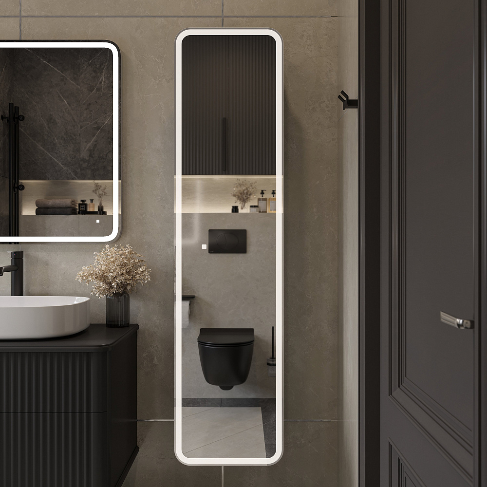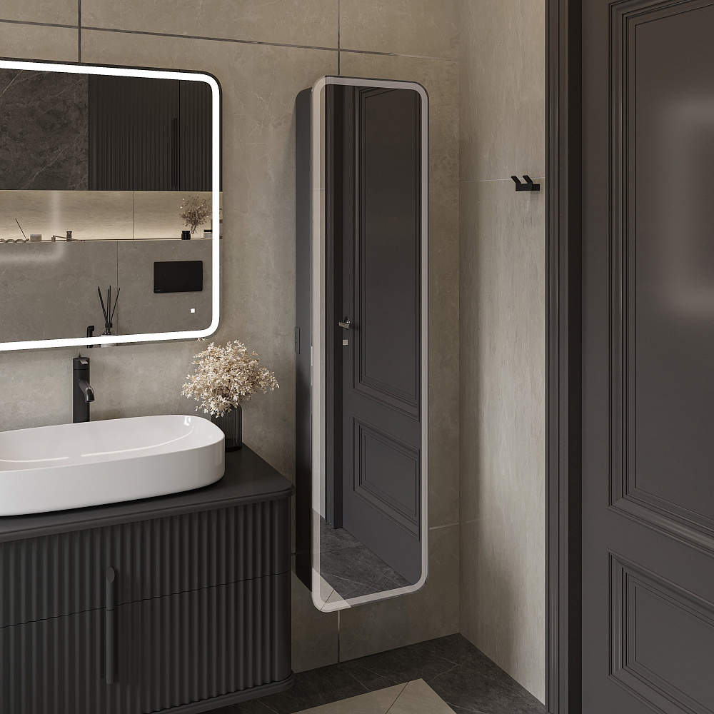 Шкаф-пенал для ванной с зеркалом STWORKI Ольборг МВК181 40 с подсветкой, антрацит