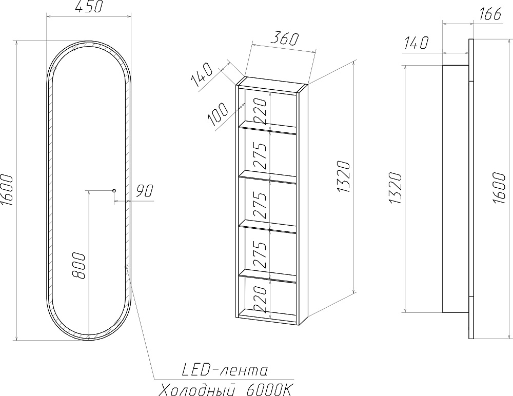 Шкаф-пенал для ванной STWORKI Мальмё 45 с подсветкой, белый