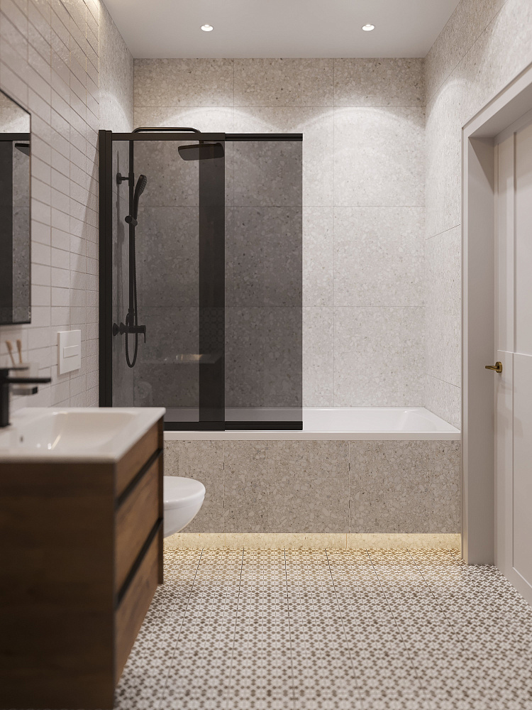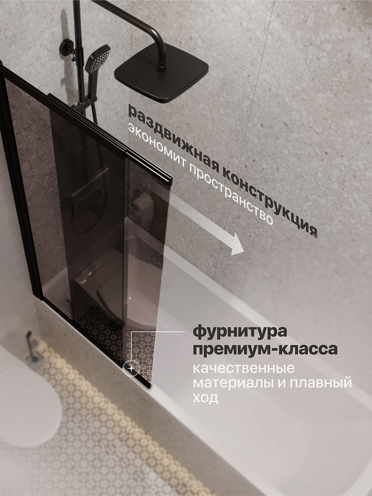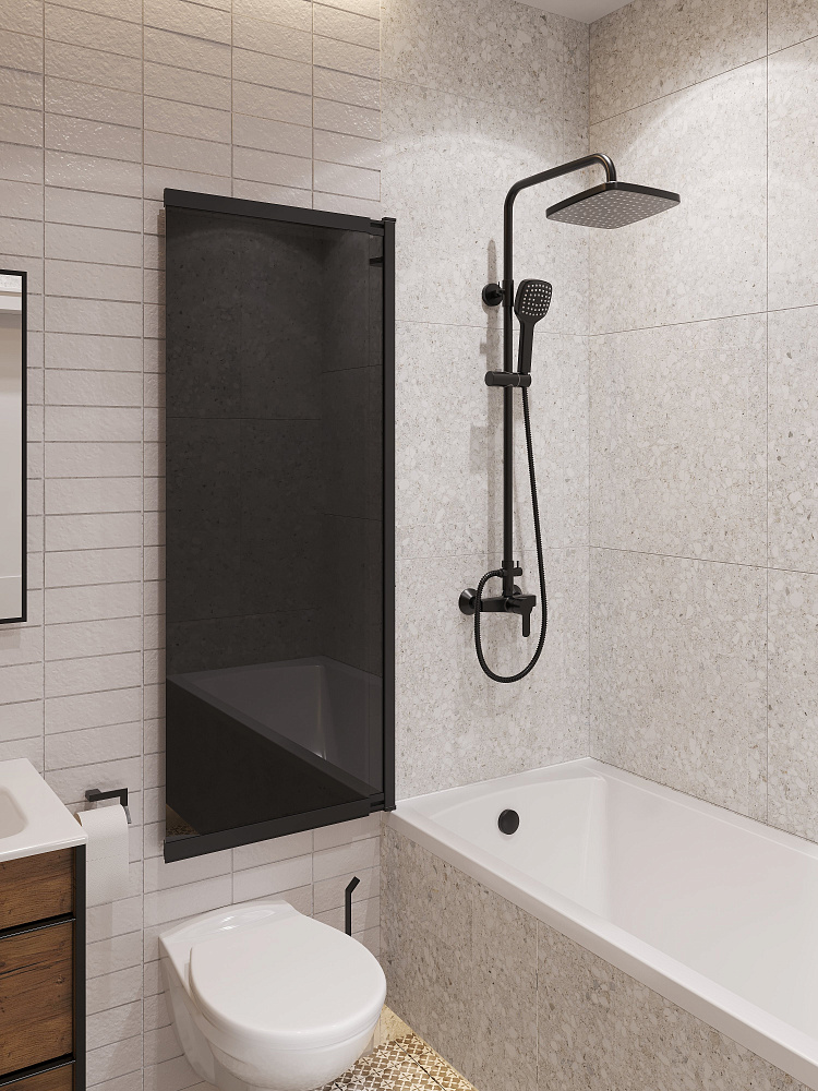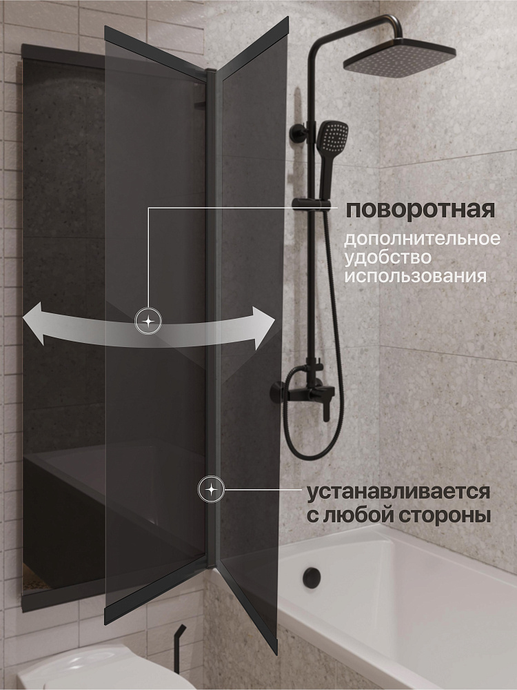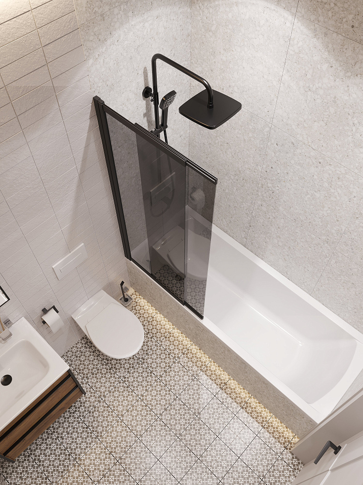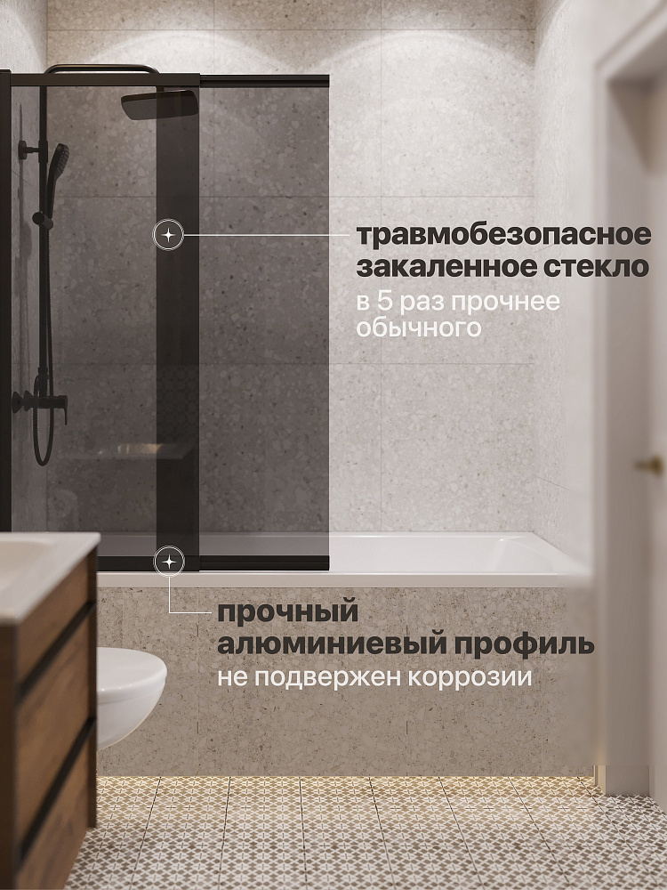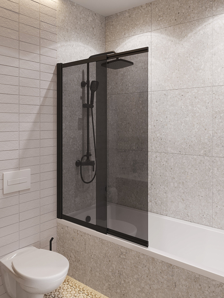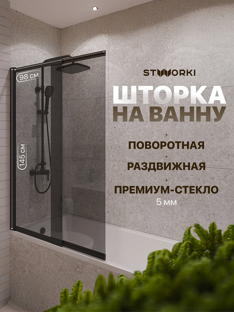Шторка на ванну STWORKI Нюборг 100х145 профиль черный матовый, тонированное стекло