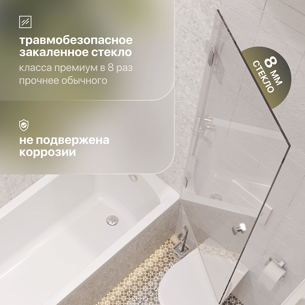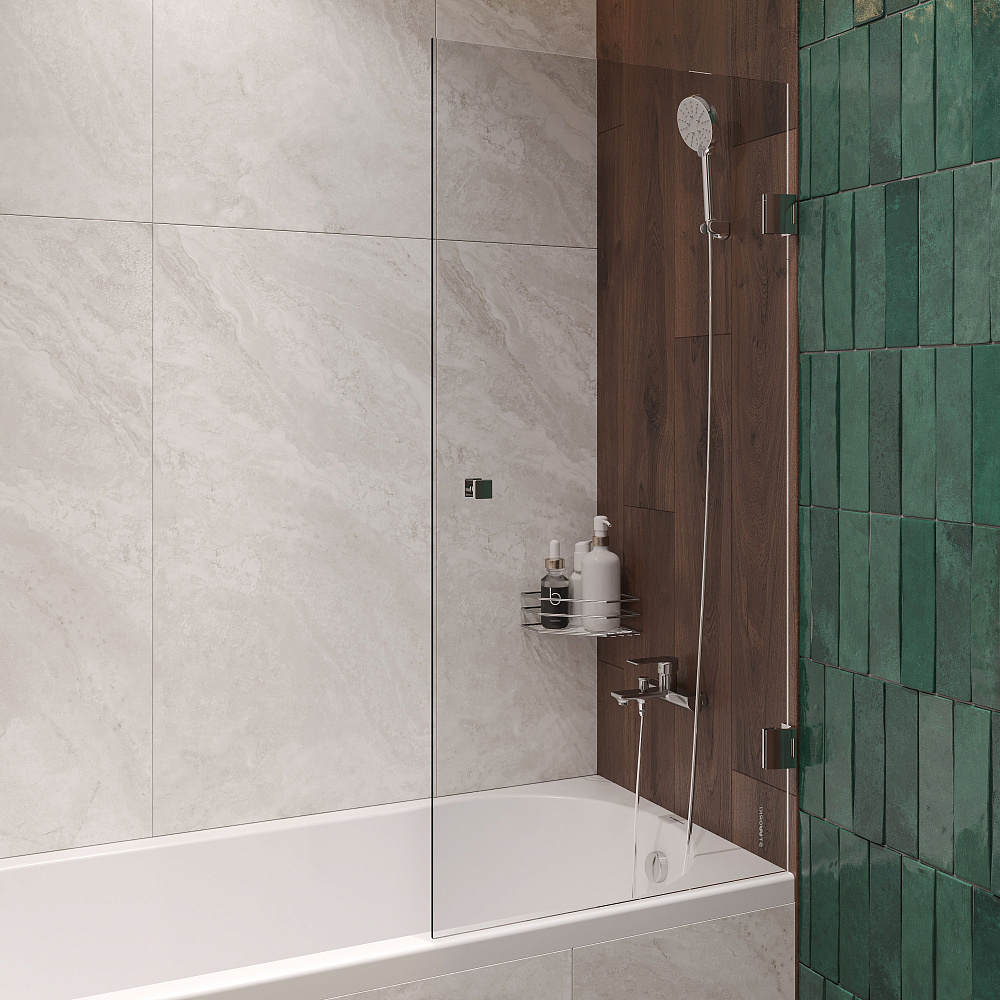 Шторка на ванну STWORKI Ольборг распашная, 70х140, профиль хром глянцевый, прозрачное стекло