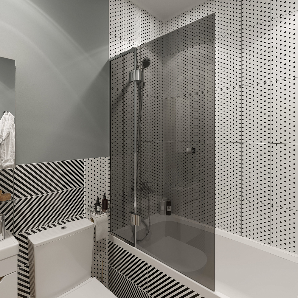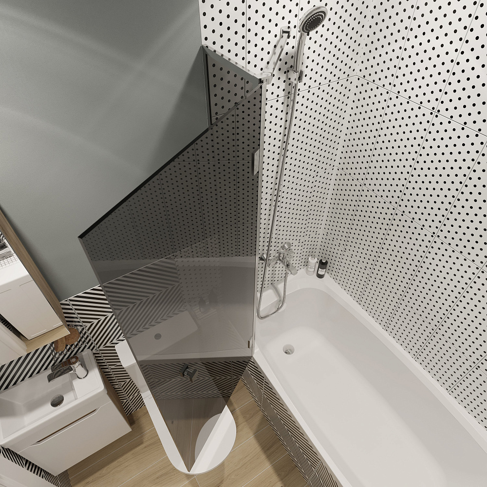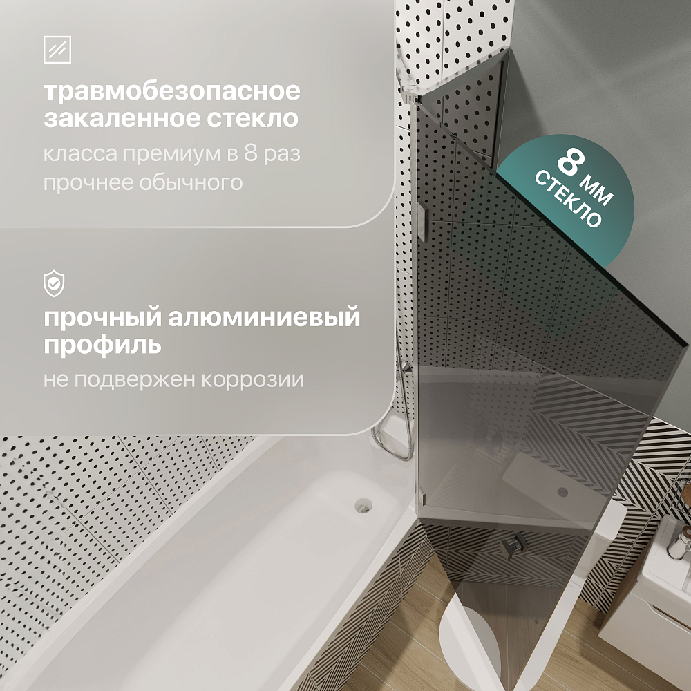 Шторка на ванну STWORKI Орхус распашная, 90, профиль хром глянцевый, тонированное стекло