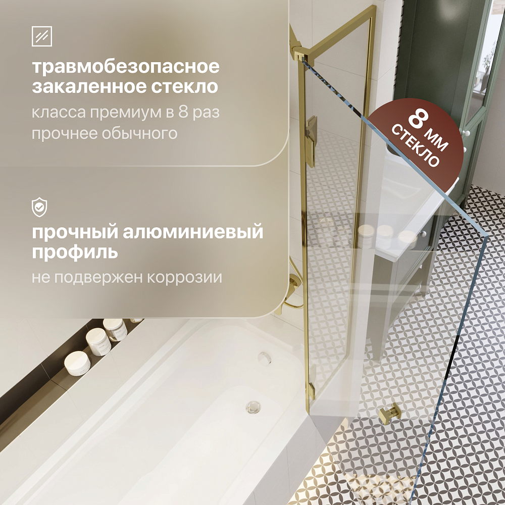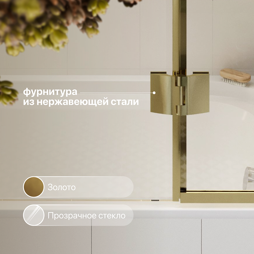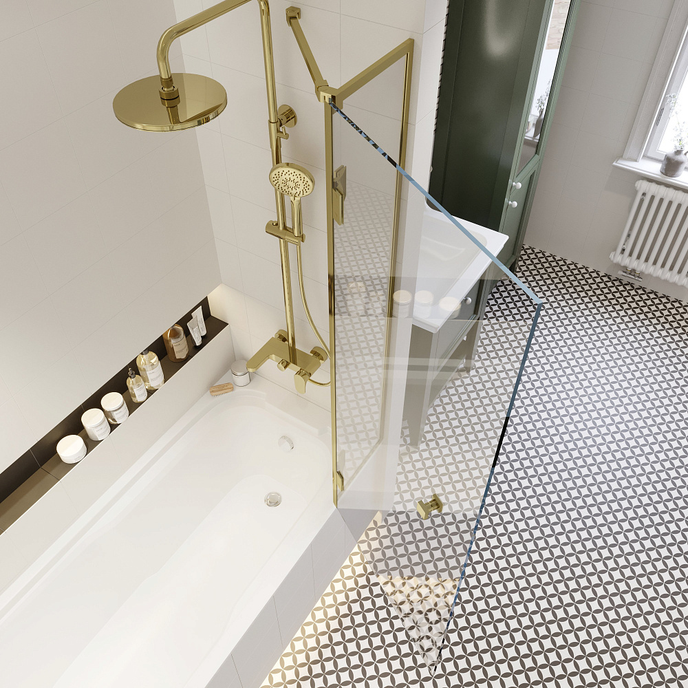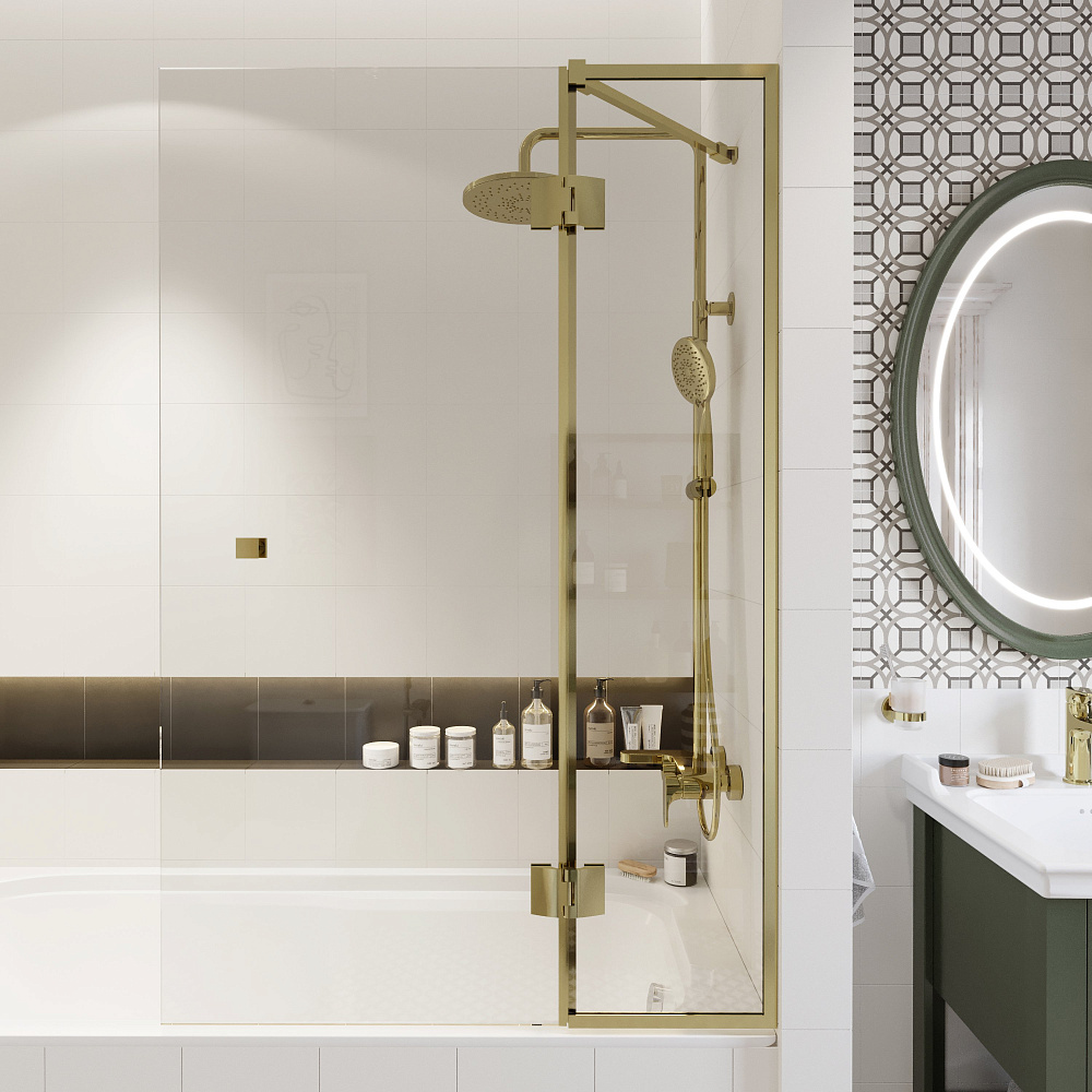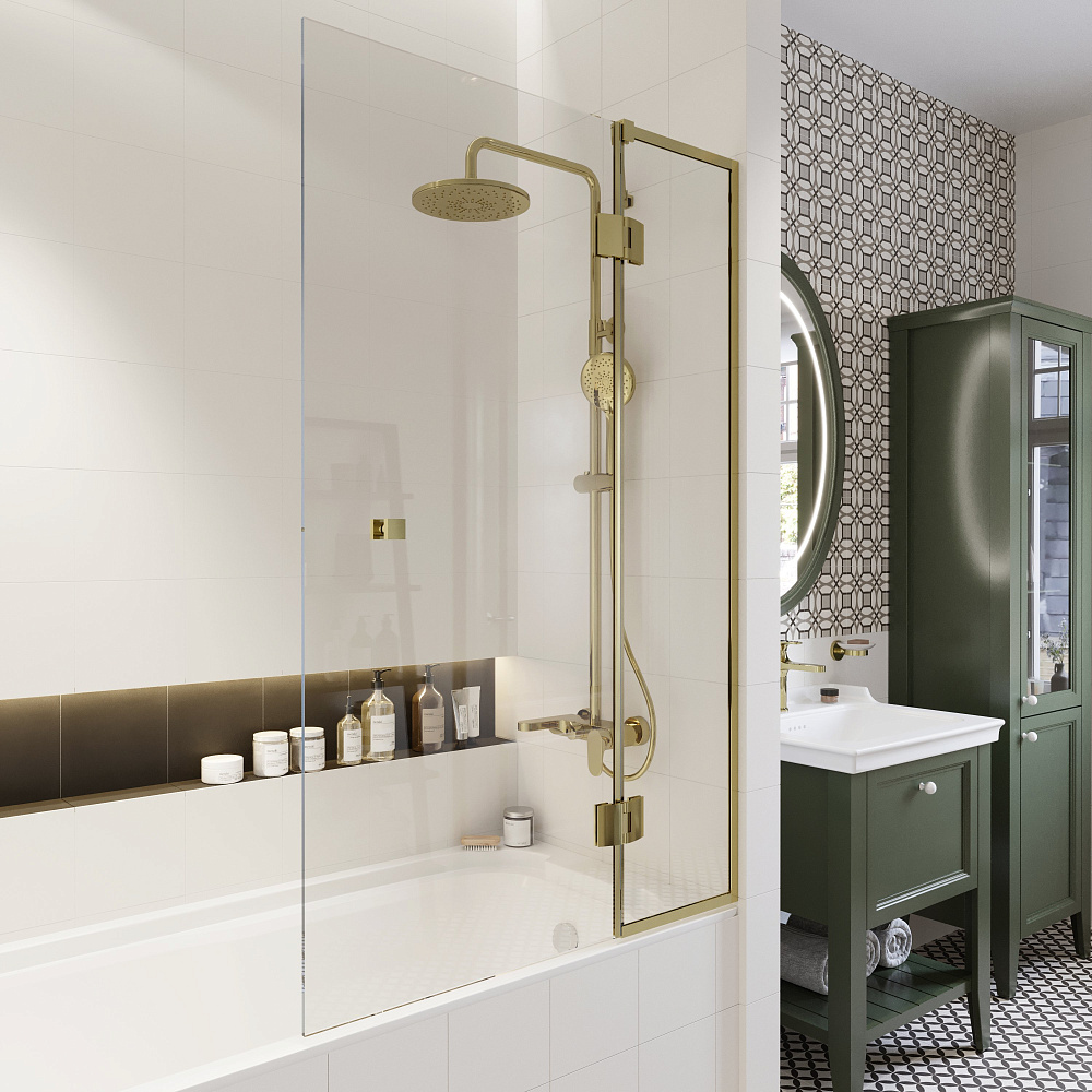 Шторка на ванну STWORKI Орхус распашная, 90, профиль золото, прозрачное стекло