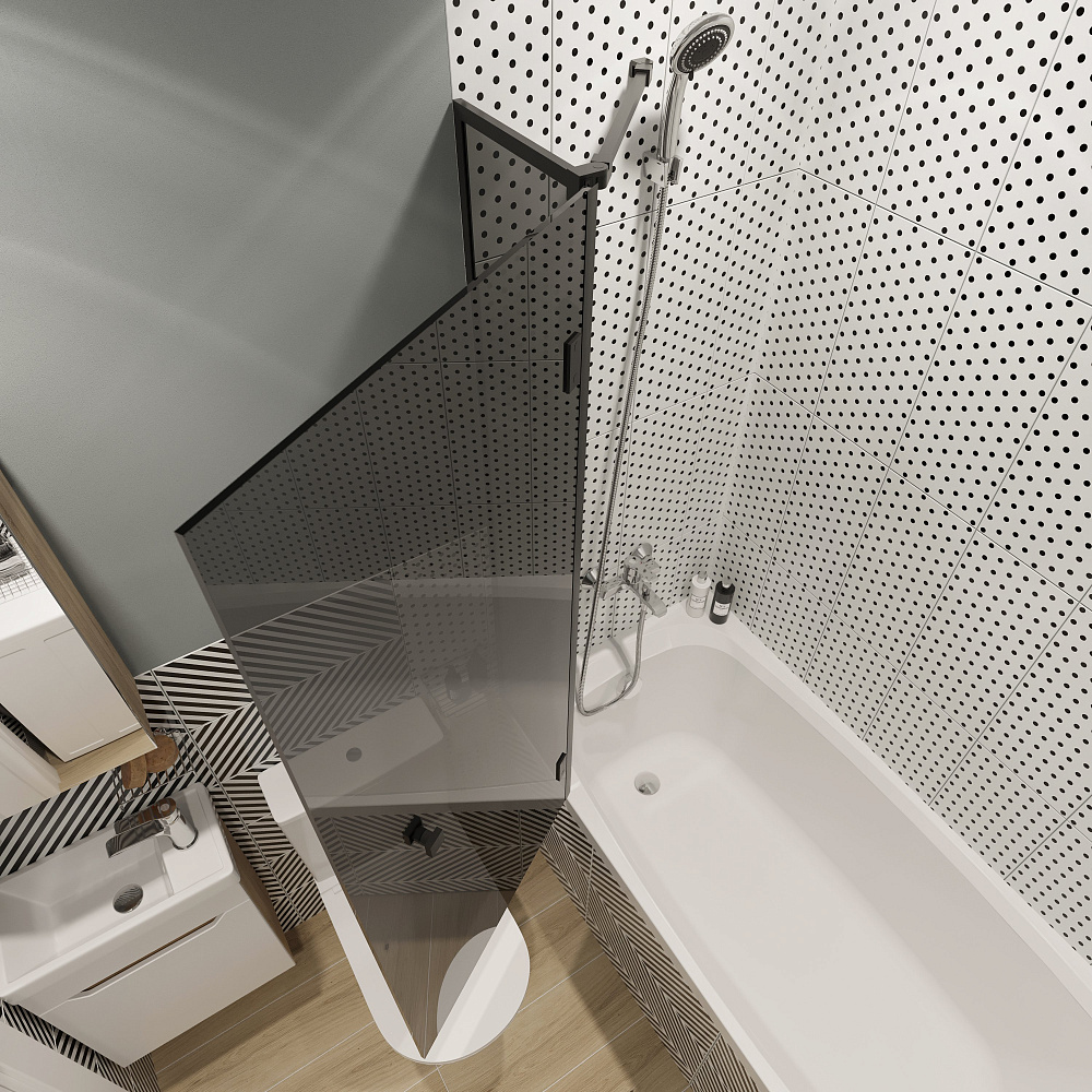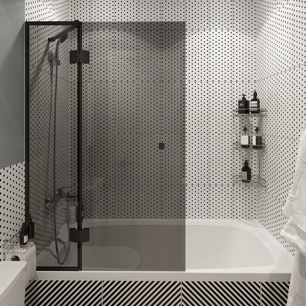 Шторка на ванну STWORKI Орхус распашная, 90, профиль черный матовый, тонированное стекло
