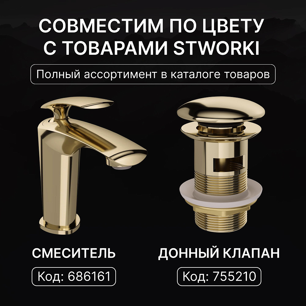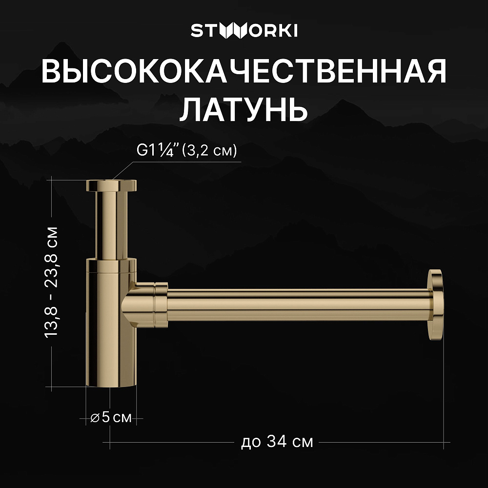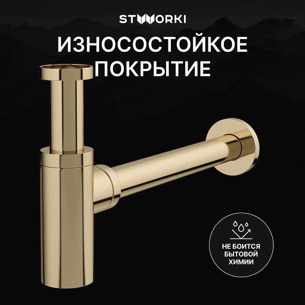 Сифон для раковины STWORKI SD-001GG 32 мм, бутылочный, золото глянец
