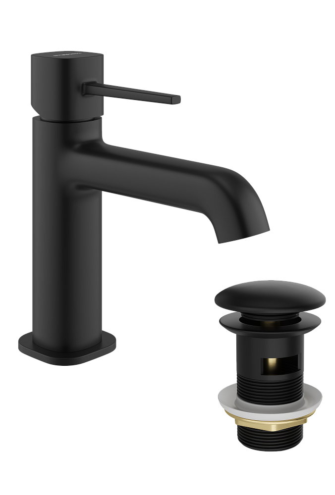 Смеситель для раковины STWORKI Эстерсунд S31010BK + донный клапан SW-001BK черный матовый