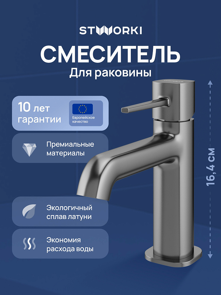 Смеситель для раковины STWORKI Эстерсунд S31010GB вороненая сталь