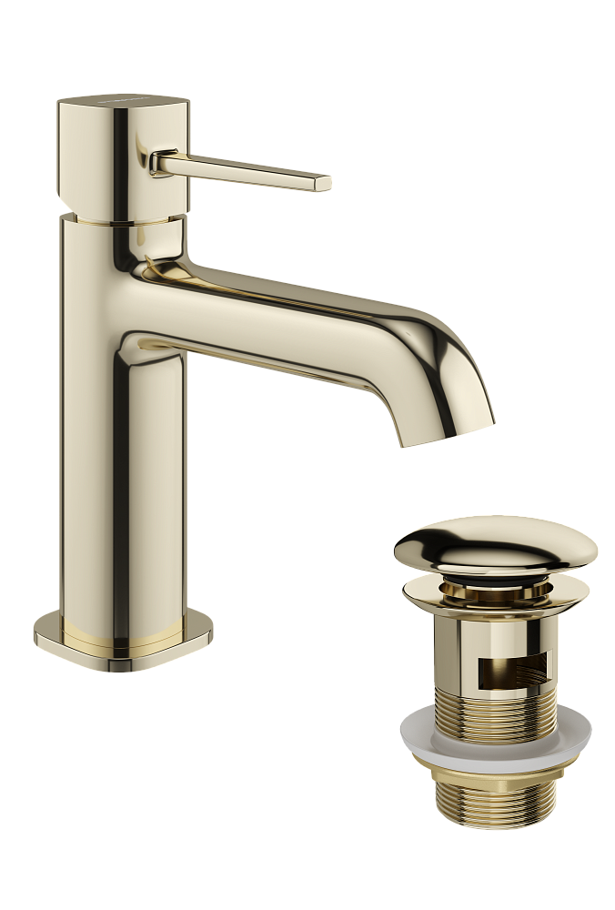 Смеситель для раковины STWORKI Эстерсунд S31010GG + донный клапан SW-001GG глянцевое золото