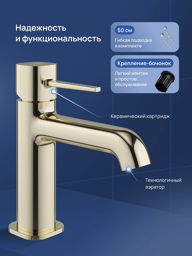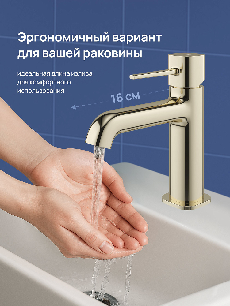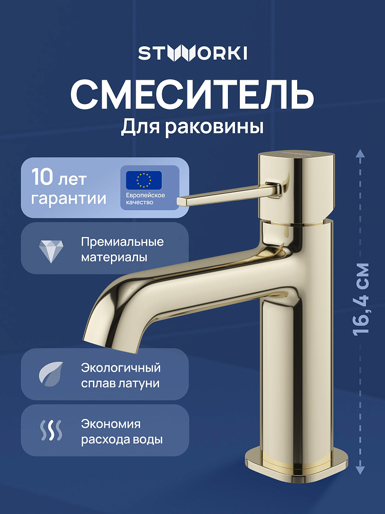 Смеситель для раковины STWORKI Эстерсунд S31010GG глянцевое золото