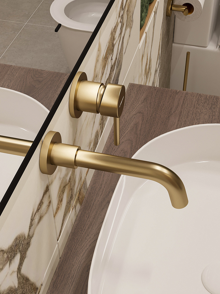 Смеситель для раковины STWORKI Эстерсунд S31040GM С ВНУТРЕННЕЙ ЧАСТЬЮ, матовое золото