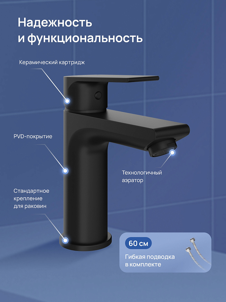 Смеситель для раковины STWORKI Готланд S13010BK матовый черный
