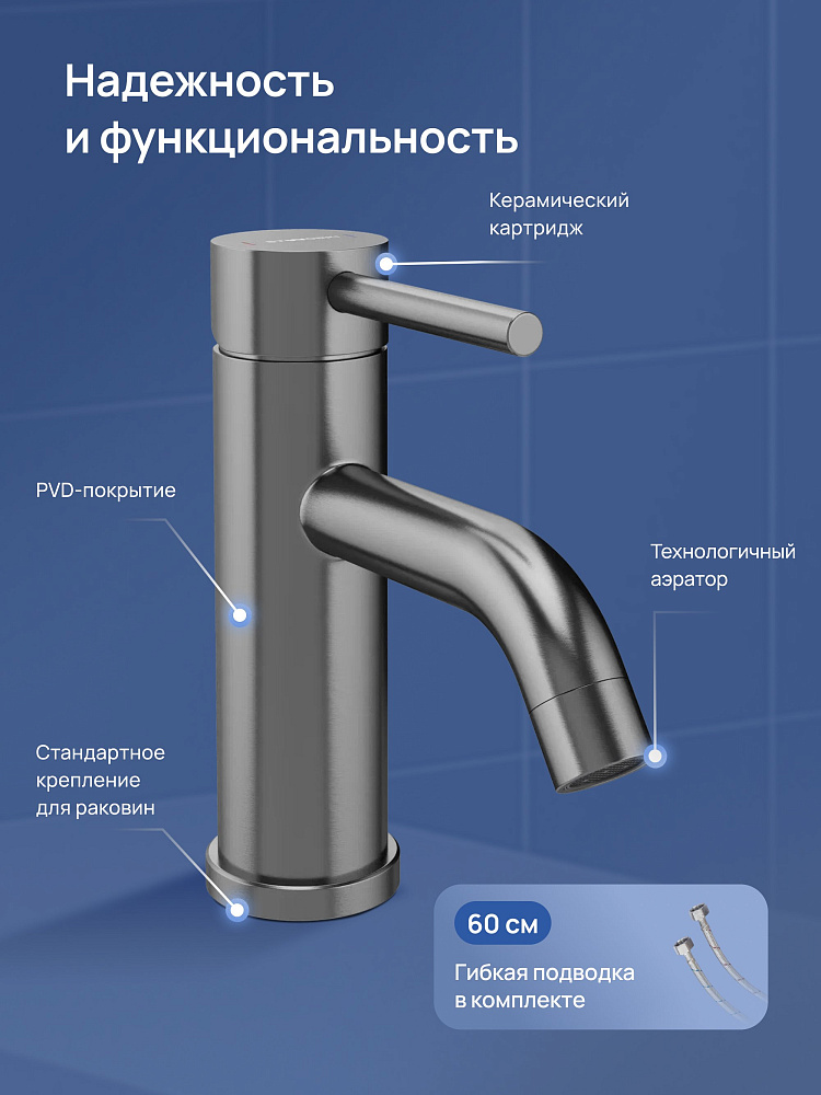 Смеситель для раковины STWORKI Киркенес S45010GB вороненая сталь