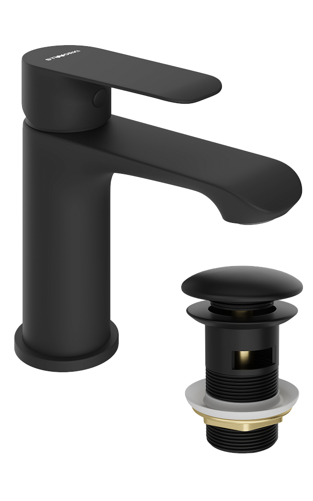 Смеситель для раковины STWORKI Копенгаген S42010BK + донный клапан SW-001BK черный матовый