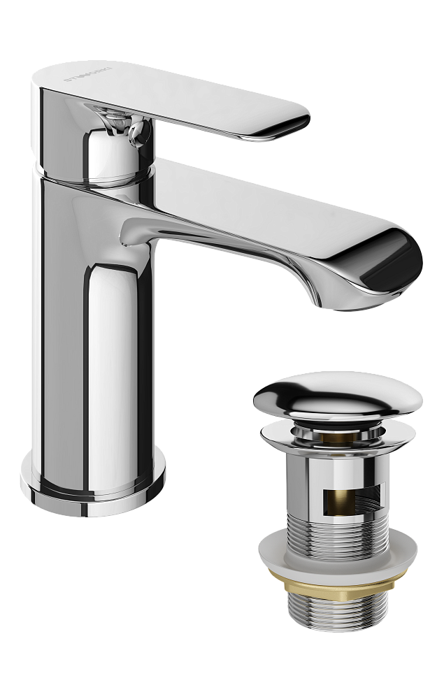 Смеситель для раковины STWORKI Копенгаген S42010CR + донный клапан SW-001CR хром