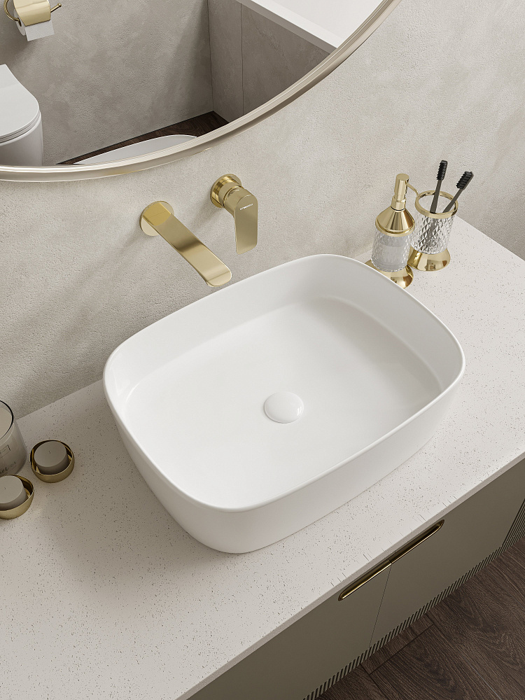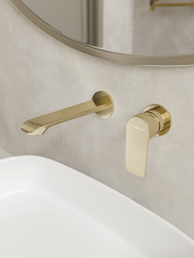 Смеситель для раковины STWORKI Копенгаген S42040GG С ВНУТРЕННЕЙ ЧАСТЬЮ, глянцевое золото