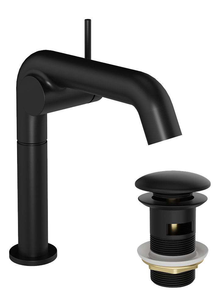 Смеситель для раковины STWORKI Лунд S25010BK + донный клапан SD-001BK матовый черный