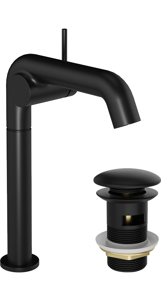 Смеситель для раковины STWORKI Лунд S25020BK + донный клапан SD-001BK матовый черный