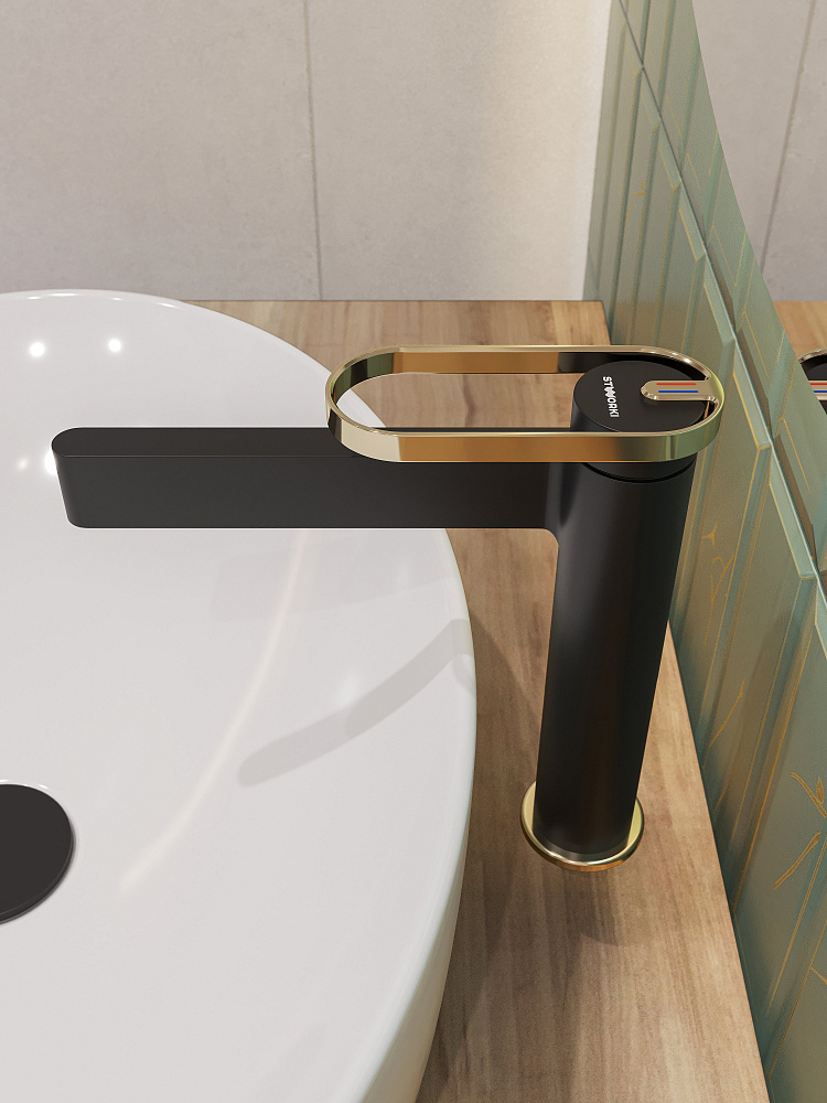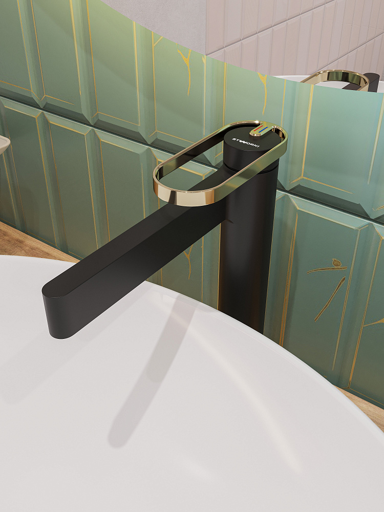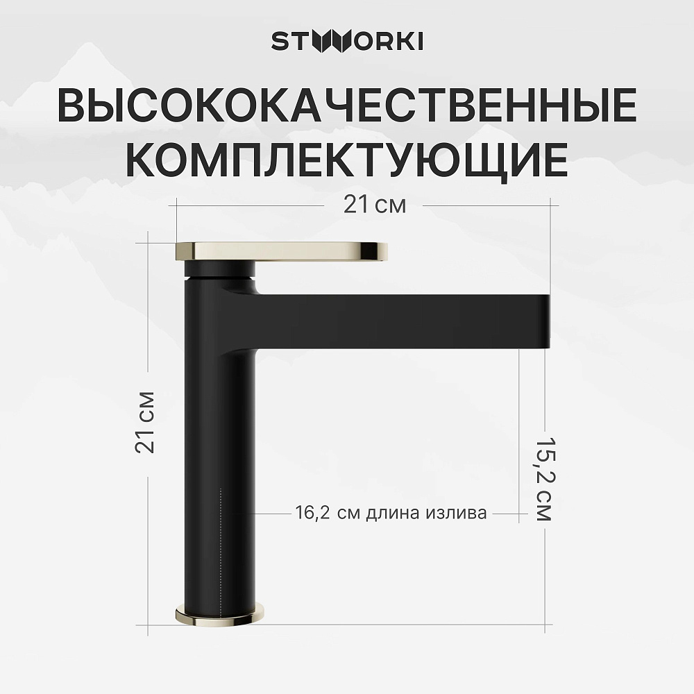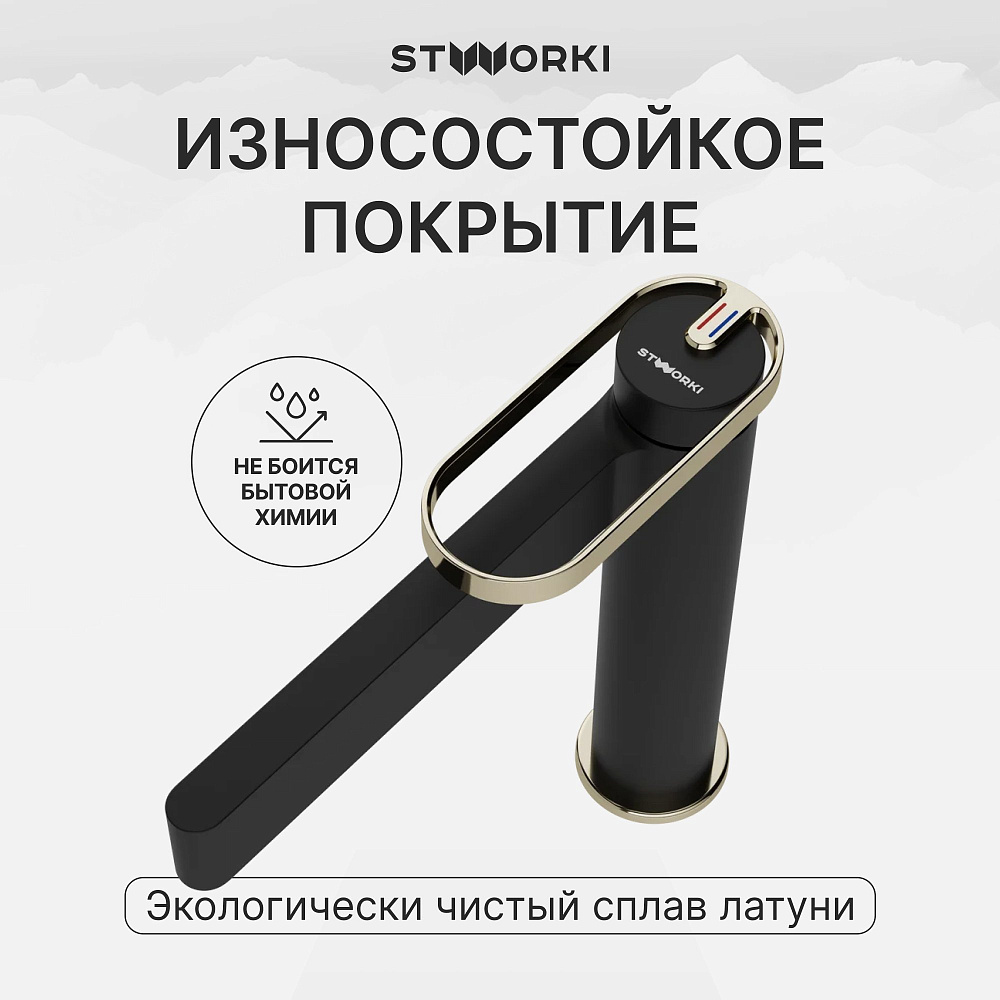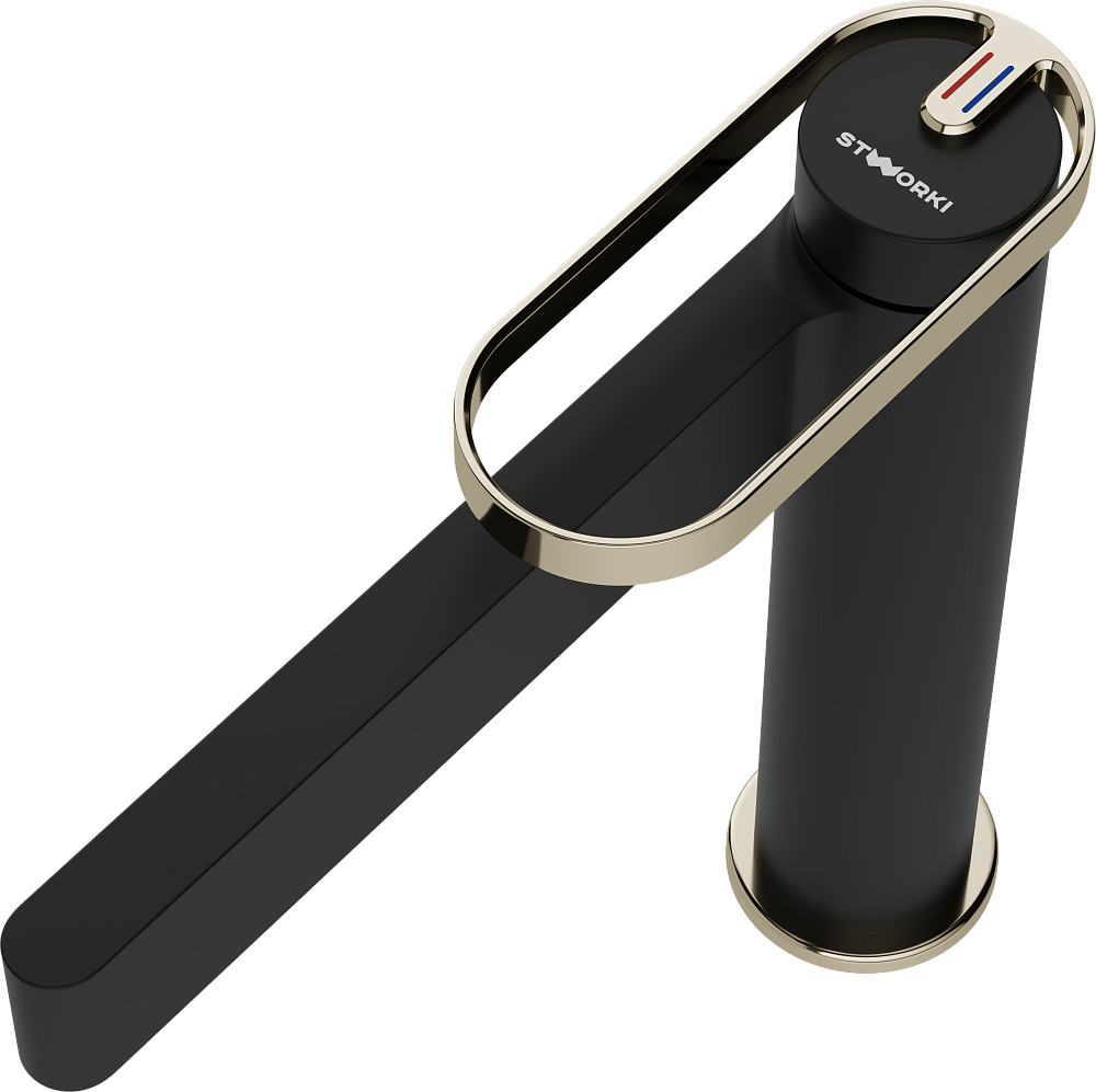 Смеситель для раковины STWORKI Малунг S11020BG матовый черный, глянцевое золото