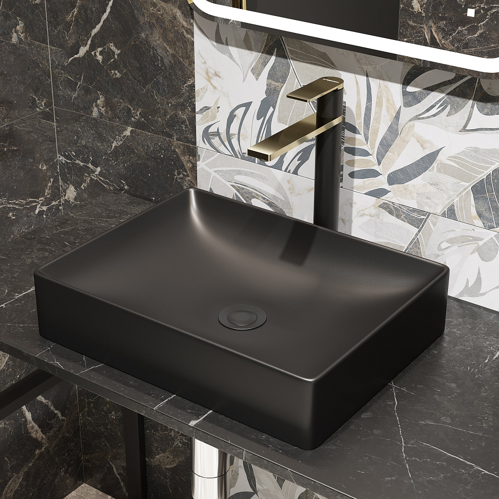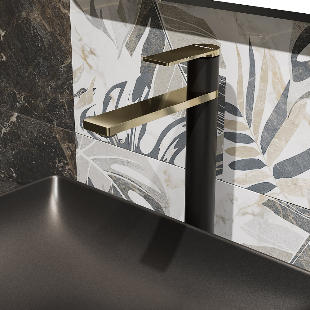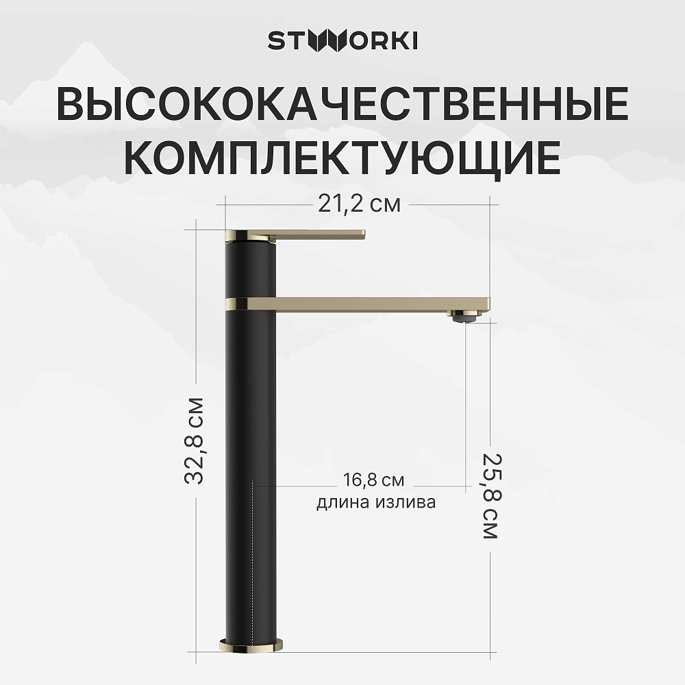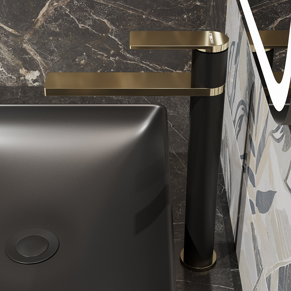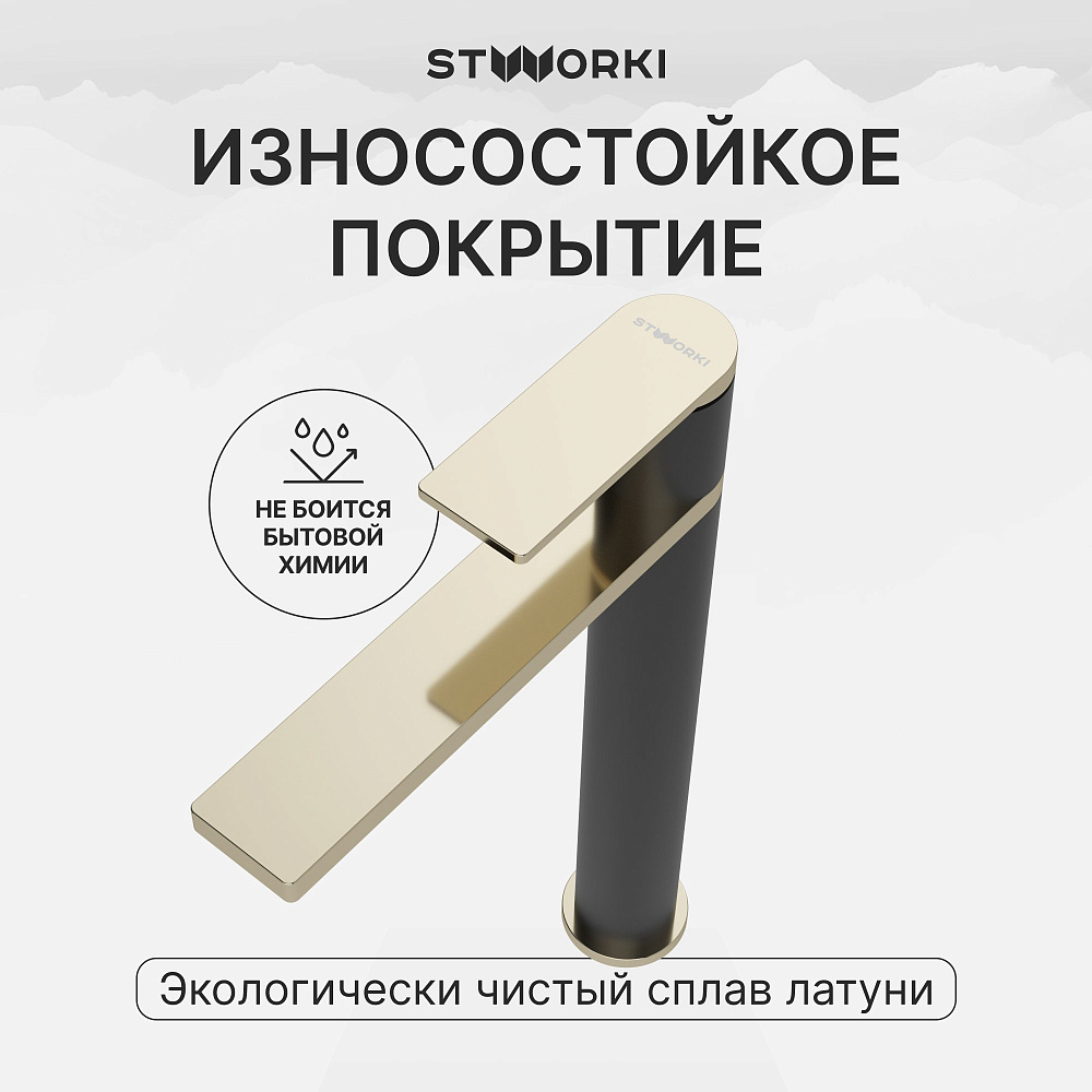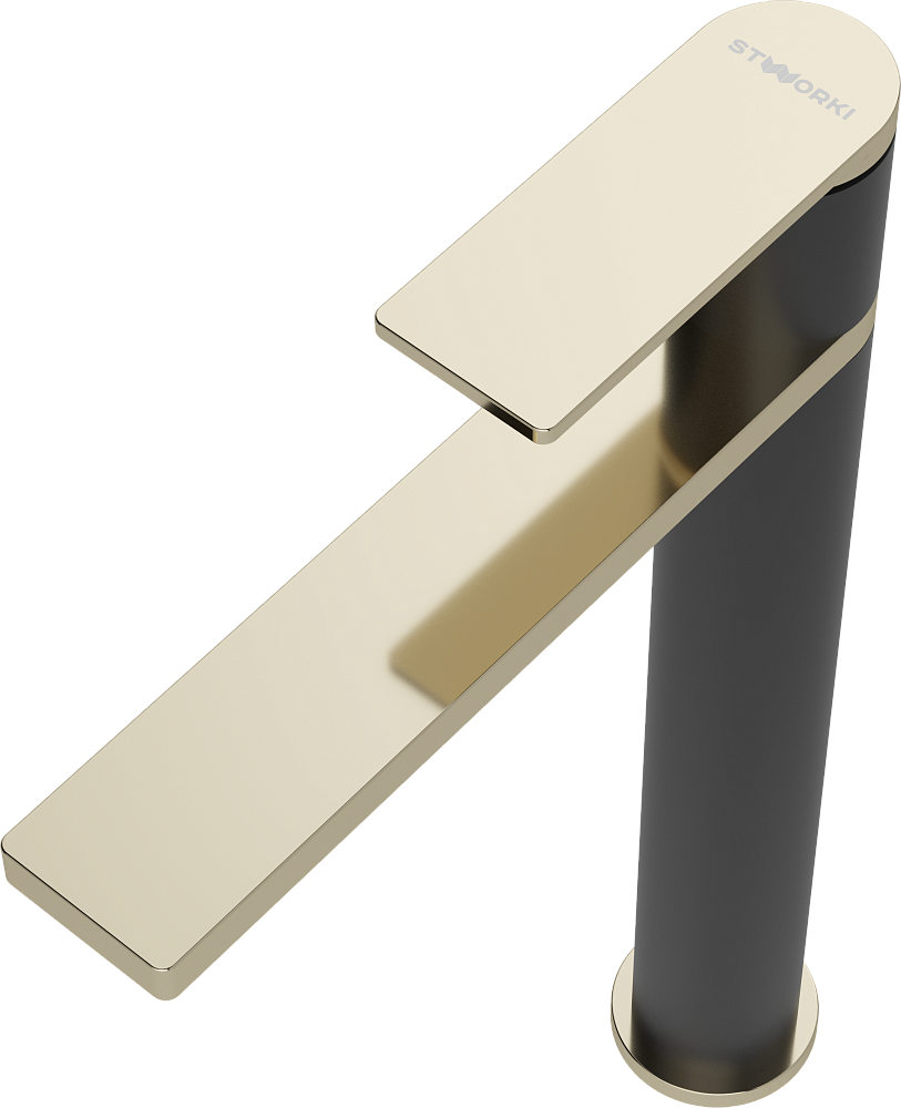 Смеситель для раковины STWORKI Олланд S01020BG матовый черный, глянцевое золото