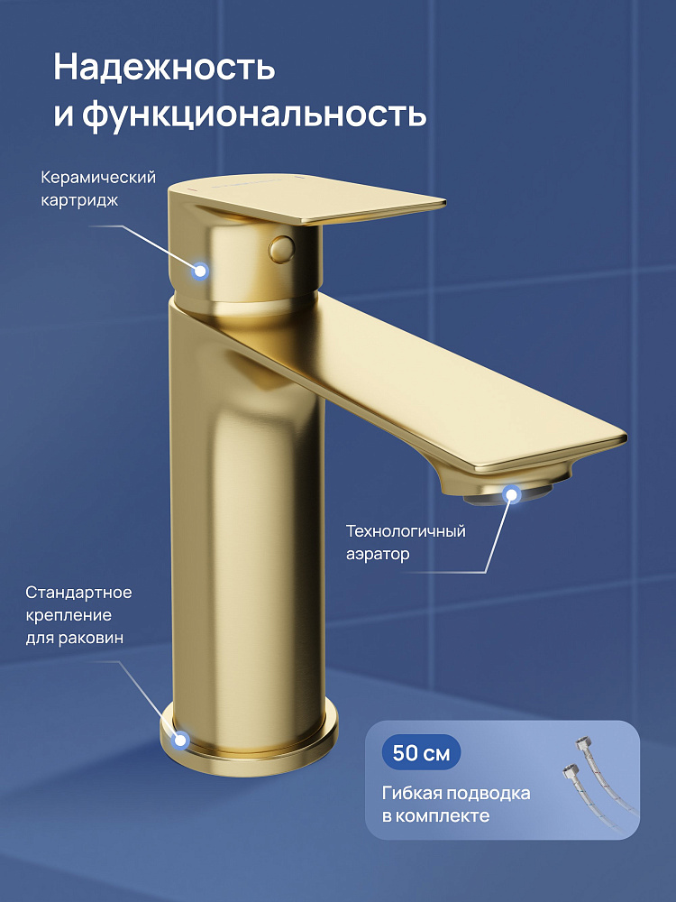Смеситель для раковины STWORKI Рандерс S19010GM матовое золото