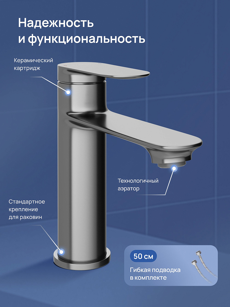 Смеситель для раковины STWORKI Сортланд S10010GB вороненая сталь